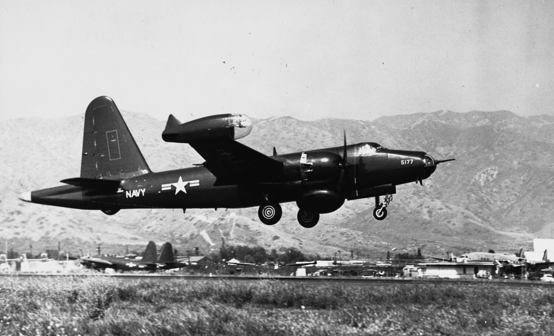 * The first of two prototype XP2V-1 "Neptunes", as the type was named, took to the air from Burbank, California, on 17 May 1945, and was followed by the second prototype soon after. Tests indicated that the new aircraft was highly maneuverable and had excellent performance. The XP2V-1 was a bullnosed aircraft, powered by twin Wright Cyclone R-3359-8 radial piston engines rated at 1,715 kW (2,300 HP) each for takeoff, driving four-bladed propellers. It was a mid-wing monoplane with a single tall tailfin; turning the rudder took a good deal of muscle. It had tricycle landing gear, with a skid bumper under the tail to protect the aircraft on steep takeoffs.