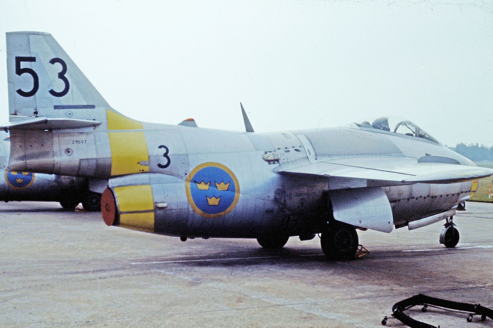 The crash record in early service was poor, mainly due to the inexperience with swept-winged aircraft and the lack of a two-seat, dual control Tunnan trainer variant: this meant that Swedish fighter pilots could only be trained using two seat variants of the de Havilland Vampire (a straight-winged jet), before going solo in a Tunnan. 99 pilots were killed during military practice flights in Sweden.