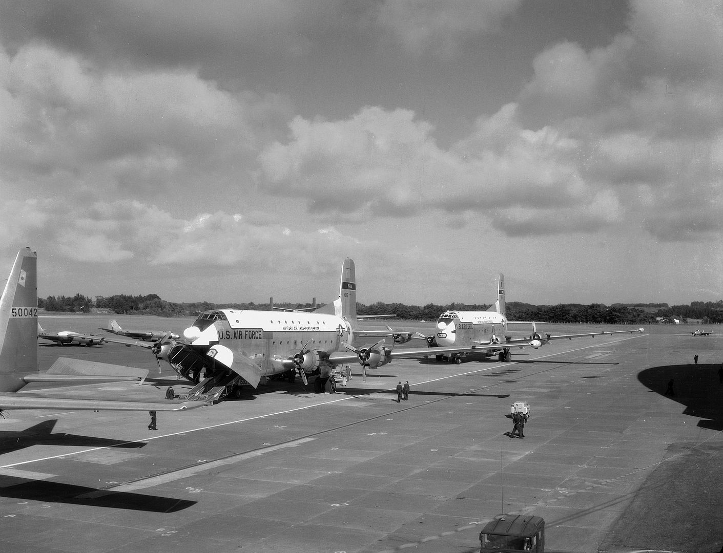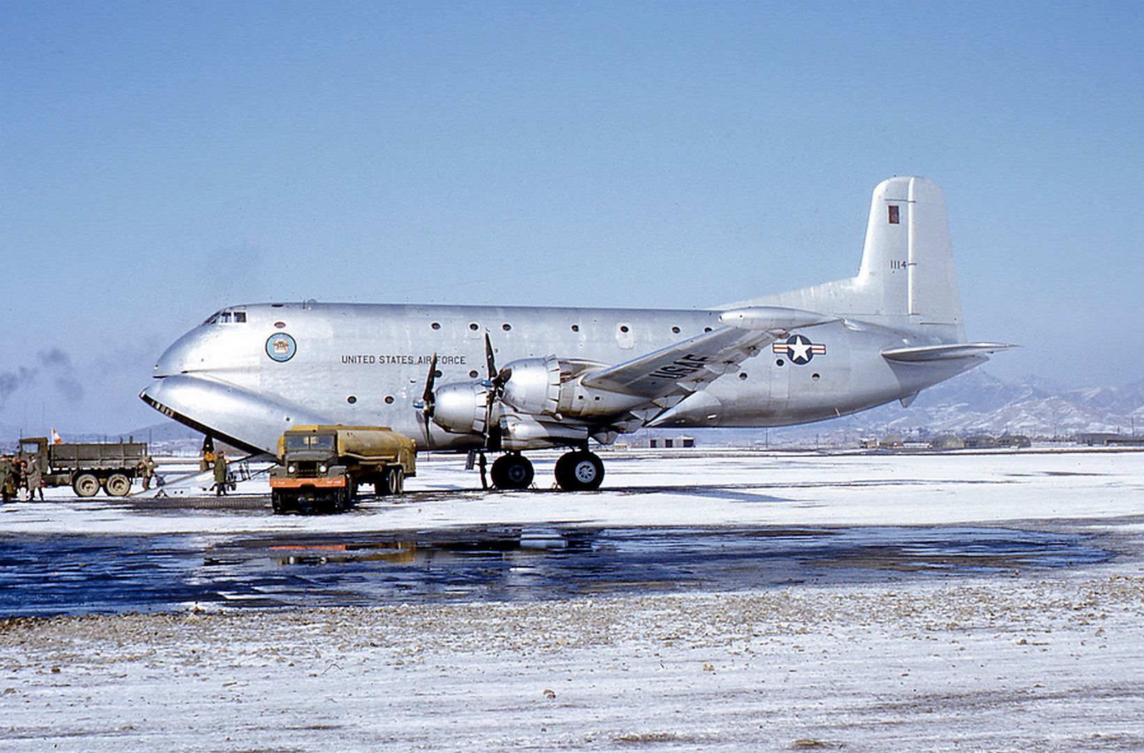 Douglas Model 1182E was a turboprop variant of the C-124A with four Pratt & Whitney YT34-P-6 turboprops; originally proposed as a tanker, it was used for trials on the operation of turboprop aircraft. Originally designated C-127.