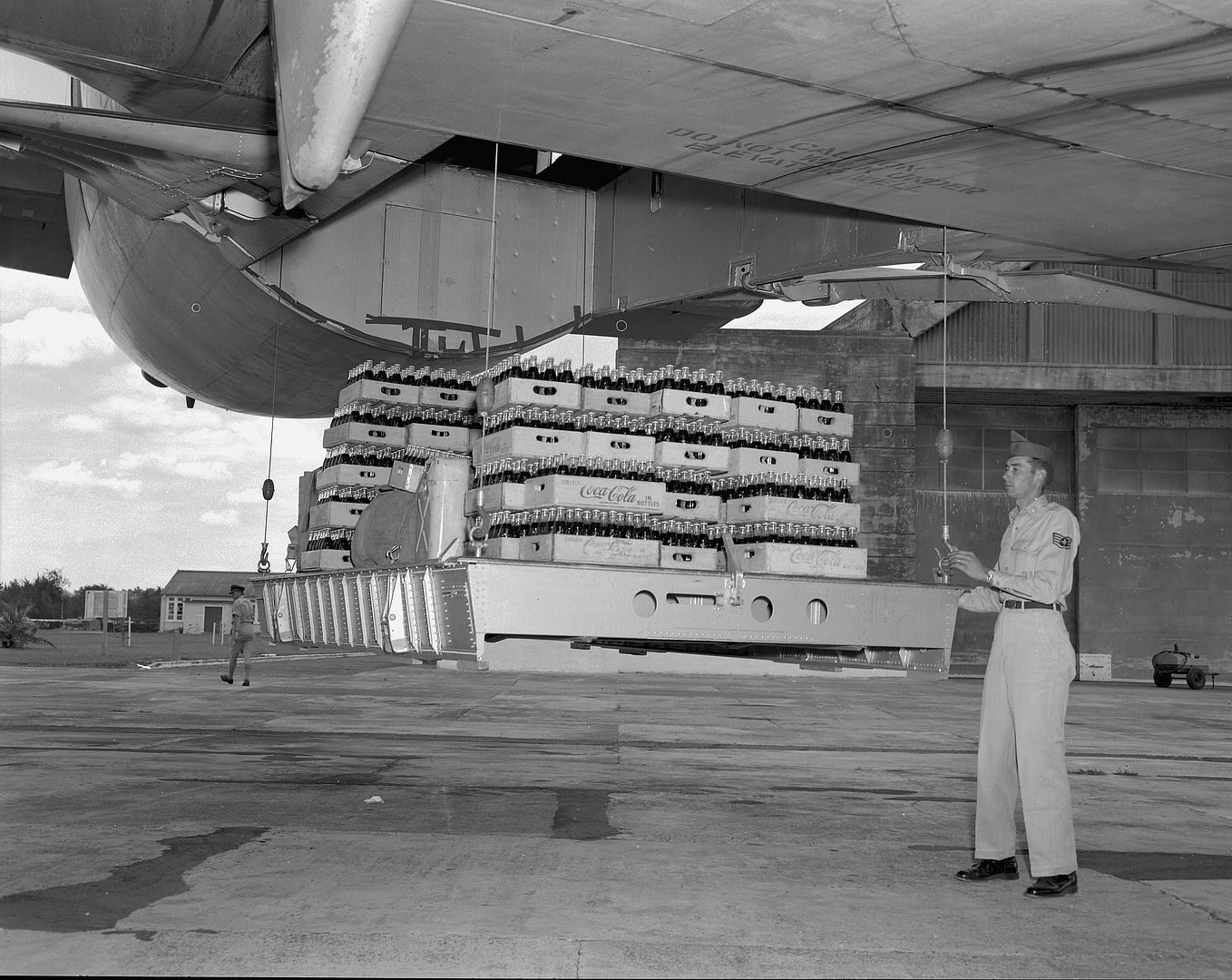 Douglas Aircraft developed the C-124 from 1947 to 1949, from a prototype they created from a World War II–design Douglas C-74 Globemaster, and based on lessons learned during the Berlin Airlift. The aircraft was powered by four large Pratt & Whitney R-4360 Wasp Major piston engines producing 3,800 hp (2,800 kW) each. The C-124's design featured two large clamshell doors and a hydraulically actuated ramp in the nose as well as a cargo elevator under the aft fuselage. The C-124 was capable of carrying 68,500 lb (31,100 kg) of cargo, and the 77 ft (23 m) cargo bay featured two overhead hoists, each capable of lifting 8,000 lb (3,600 kg). As a cargo hauler, it could carry tanks, guns, trucks and other heavy equipment, while in its passenger-carrying role it could carry 200 fully equipped troops on its double decks or 127 litter patients and their attendants. It was the only aircraft of its time capable of transporting fully assembled heavy equipment such as tanks and bulldozers.