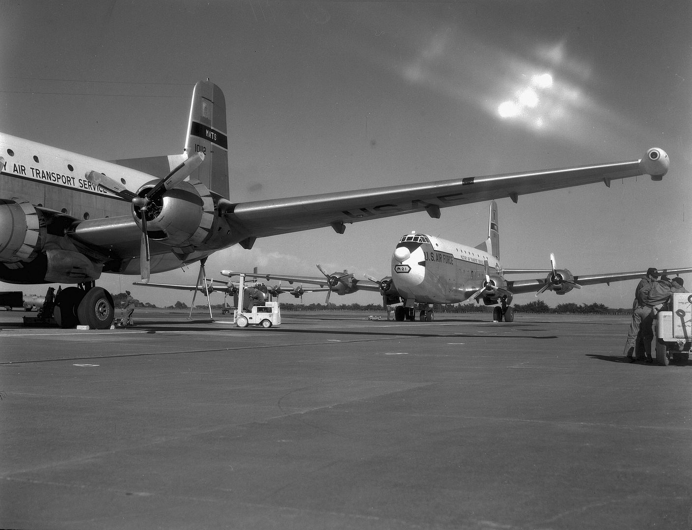 The C-124 was the primary heavy-lift transport for United States Air Force (USAF) Military Air Transport Service (MATS) during the 1950s and early 1960s, until the Lockheed C-141 Starlifter entered service. It served in MATS, later Military Airlift Command (MAC), units of the Air Force Reserve and Air National Guard until retired in 1974.