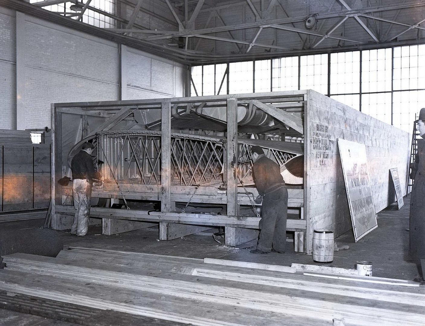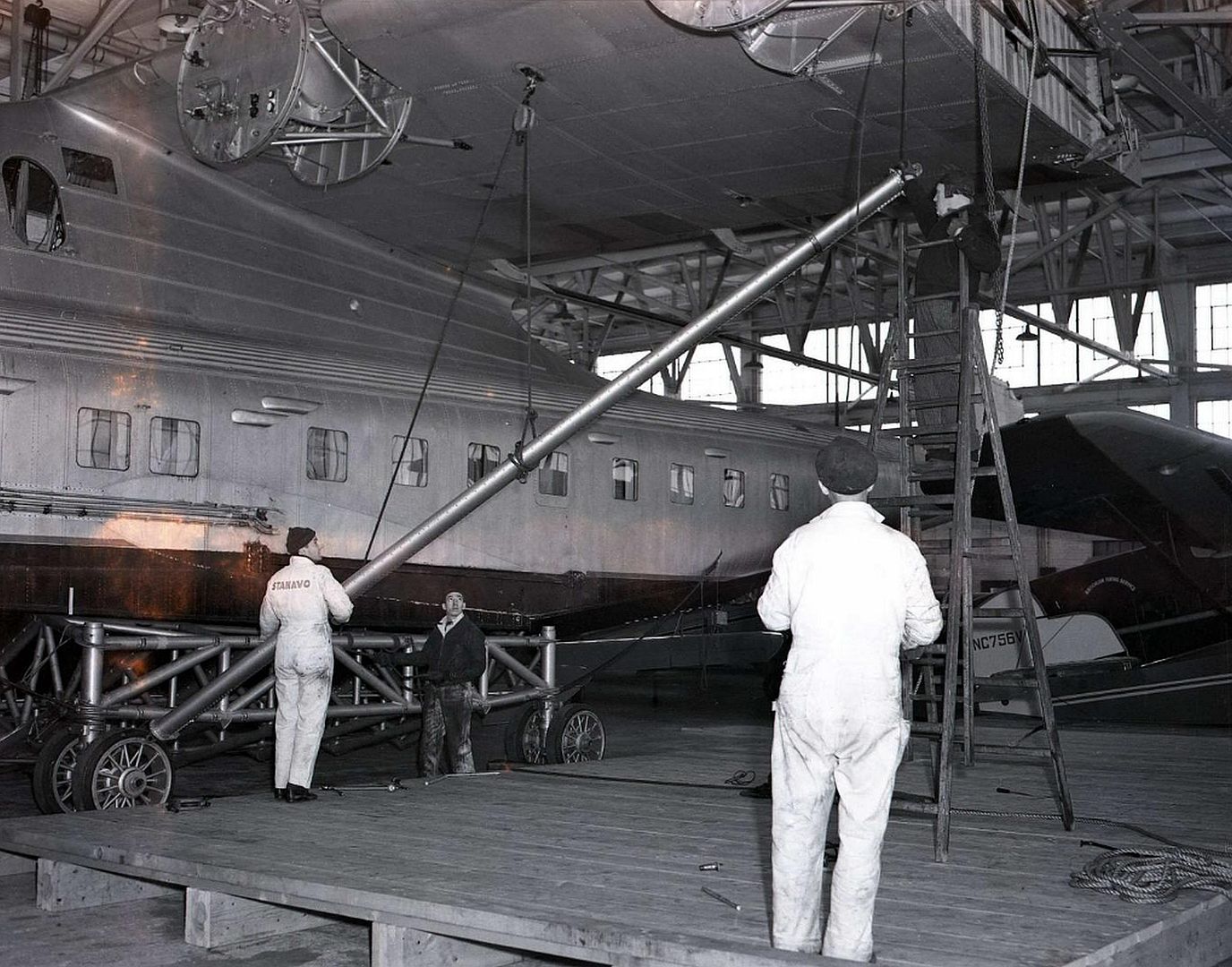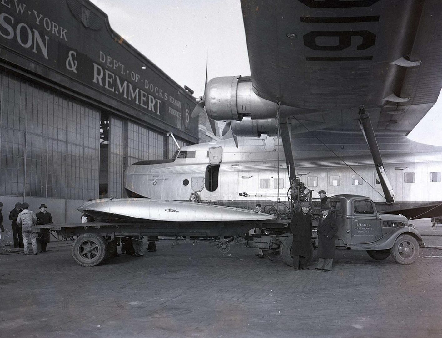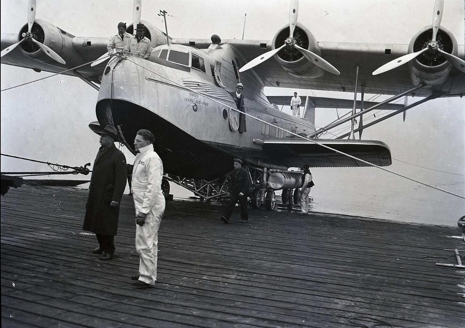 The Russian Clipper was first flown to New York and then dismantled and boxed up to be placed onto an awaiting steamship direct to Leningrad. Some parts of the clipper like wings and fuselage were too large so they were secured on deck and tied down.
