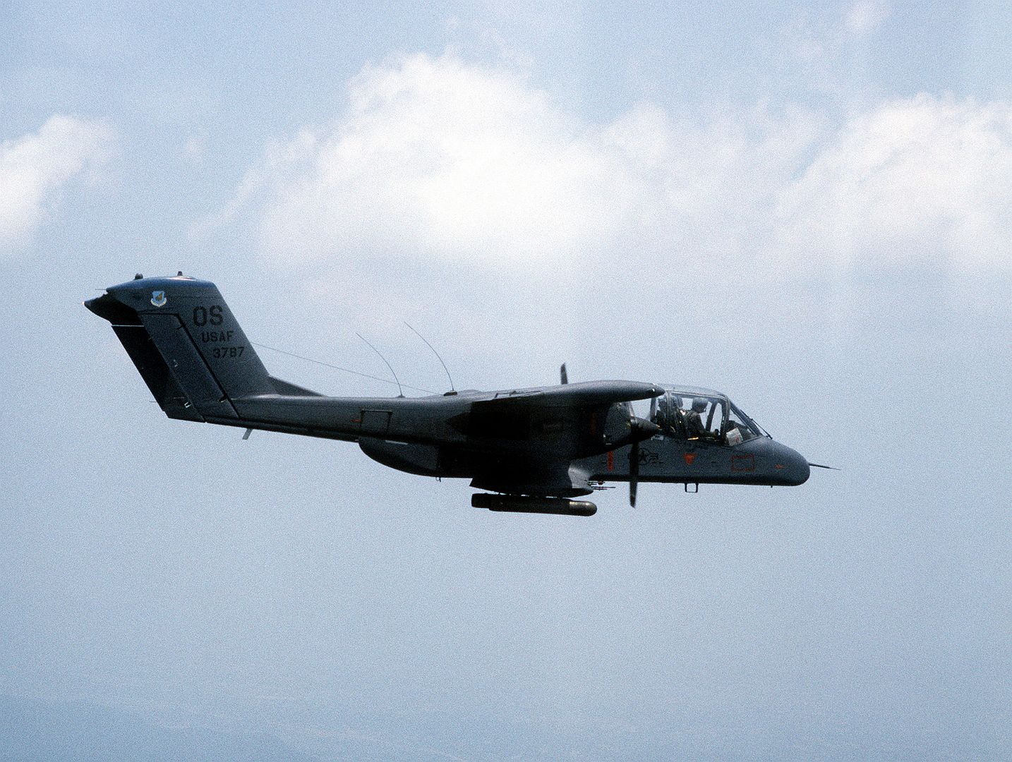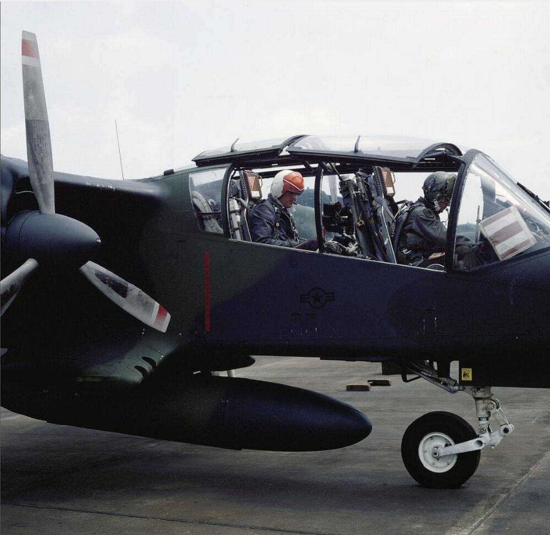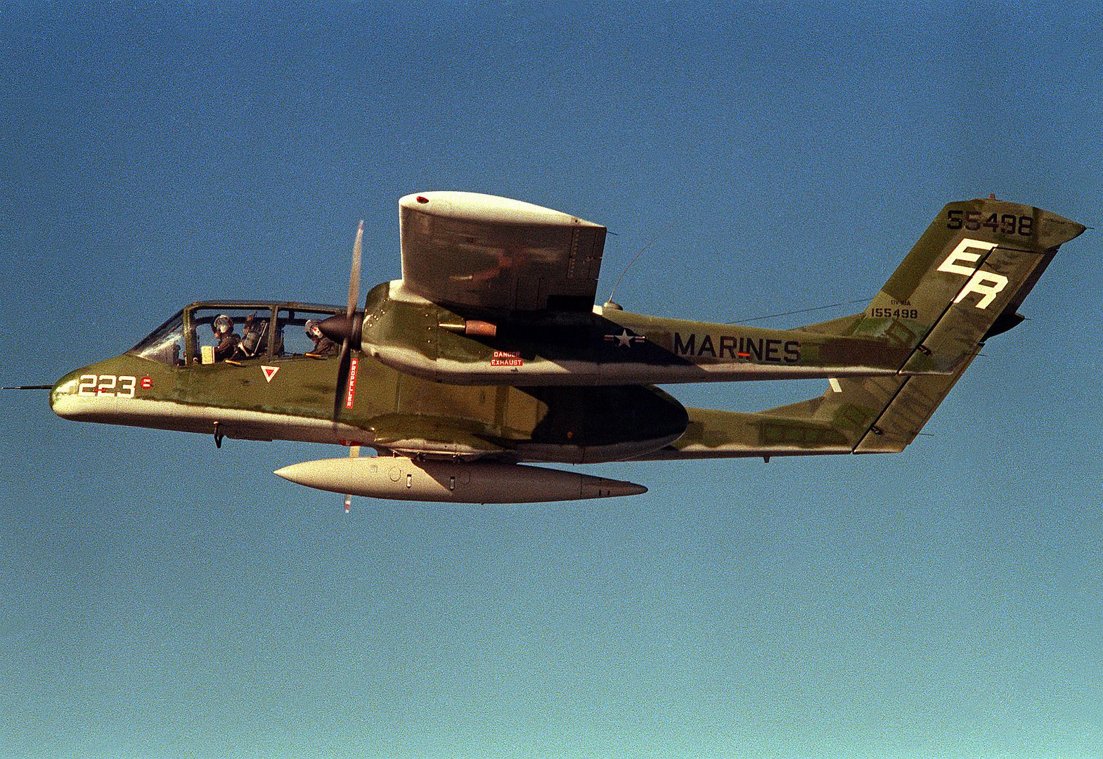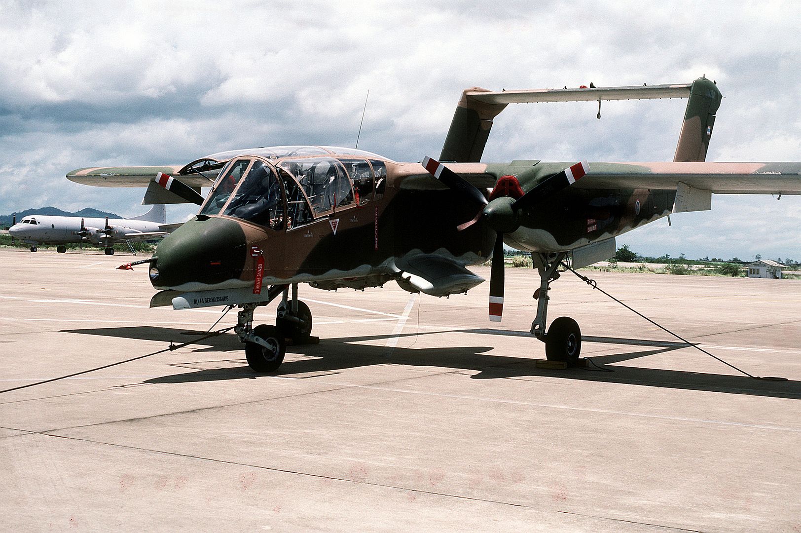 • The North American Rockwell OV-10 Bronco is an American twin-turboprop light attack and observation aircraft. It was developed in the 1960s as a special aircraft for counter-insurgency (COIN) combat, and one of its primary missions was as a forward air control (FAC) aircraft. It can carry up to 3,200 lb (1,450 kg) of external munitions and internal loads such as paratroopers or stretchers, and can loiter for three or more hours.