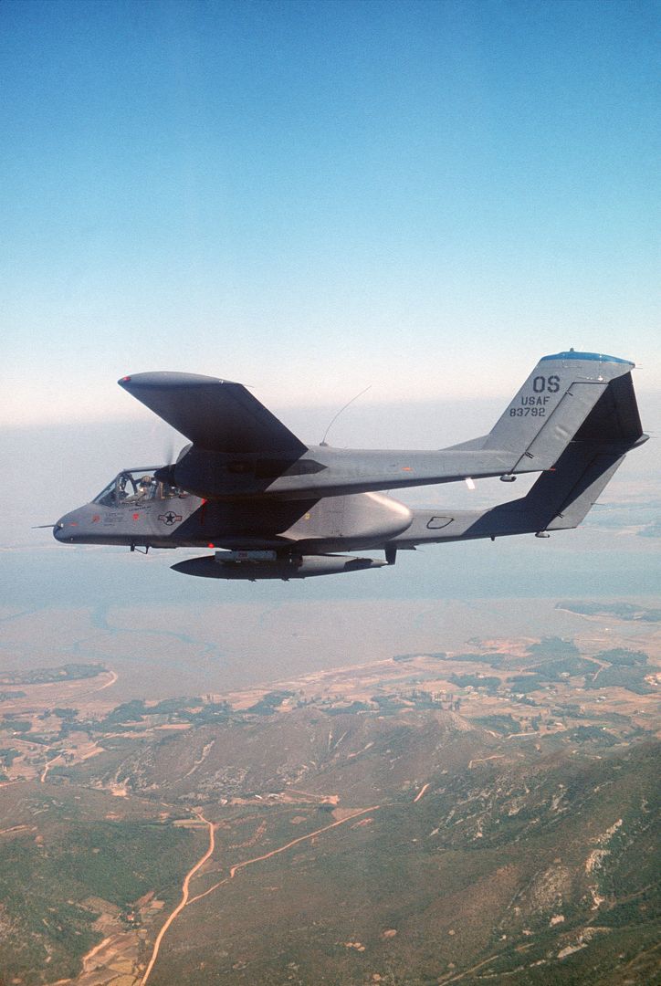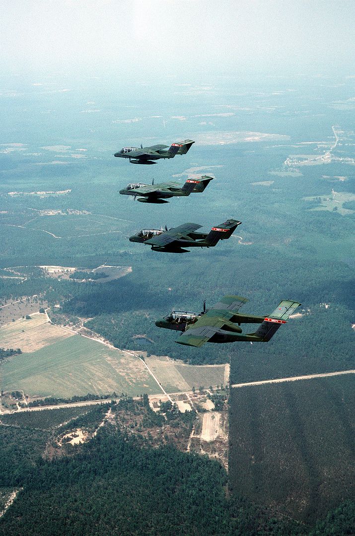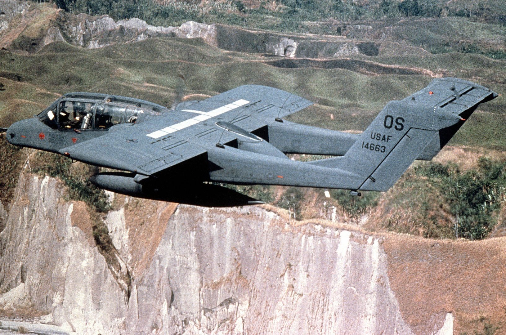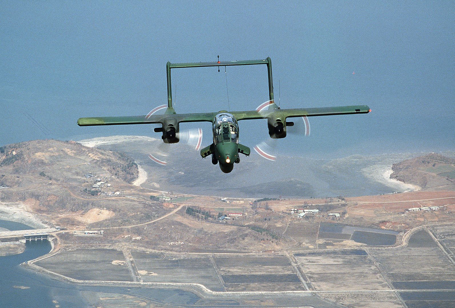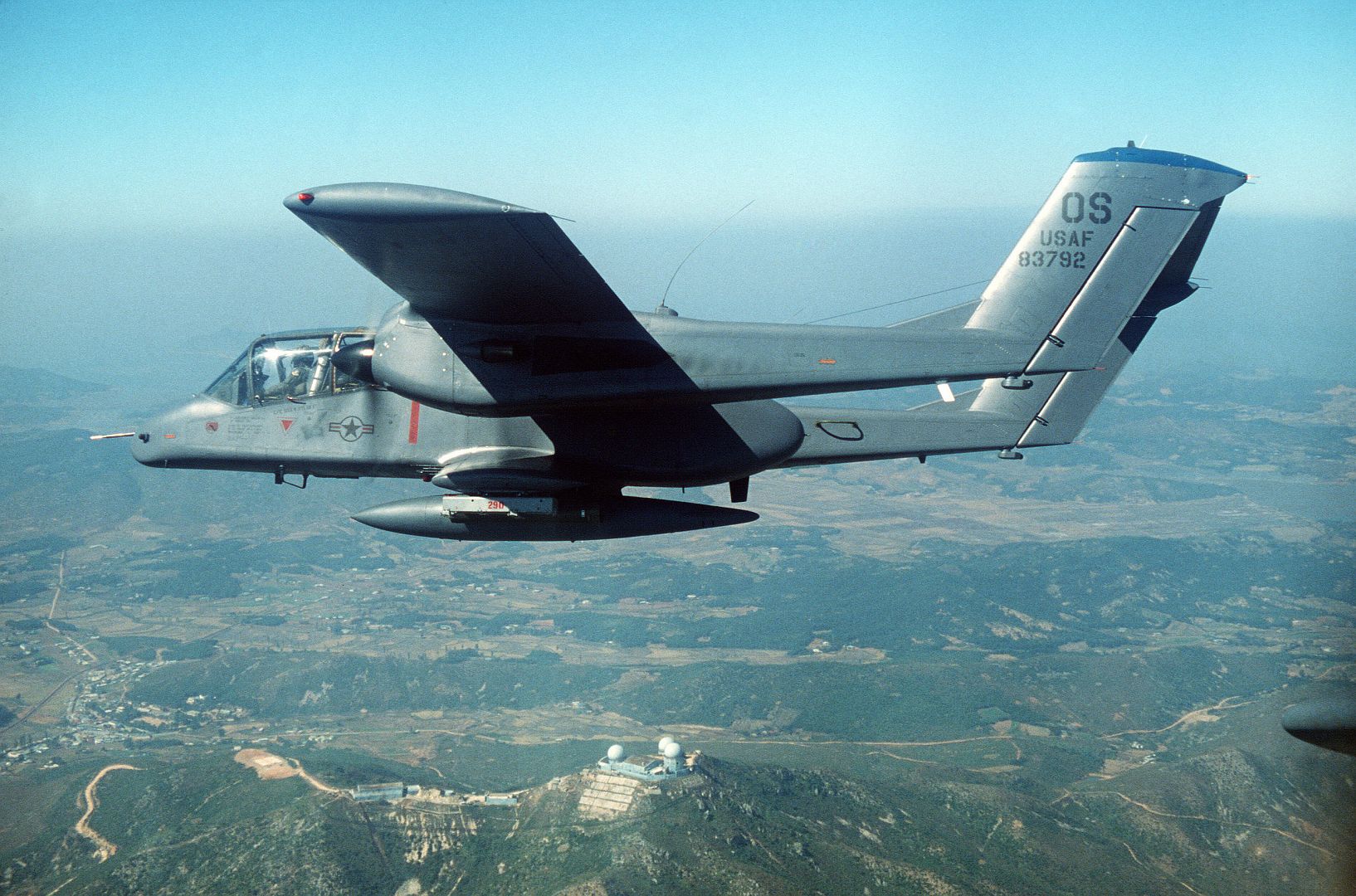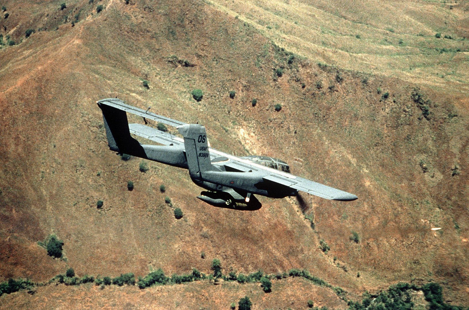 • The North American Rockwell OV-10 Bronco is an American twin-turboprop light attack and observation aircraft. It was developed in the 1960s as a special aircraft for counter-insurgency (COIN) combat, and one of its primary missions was as a forward air control (FAC) aircraft. It can carry up to 3,200 lb (1,450 kg) of external munitions and internal loads such as paratroopers or stretchers, and can loiter for three or more hours.