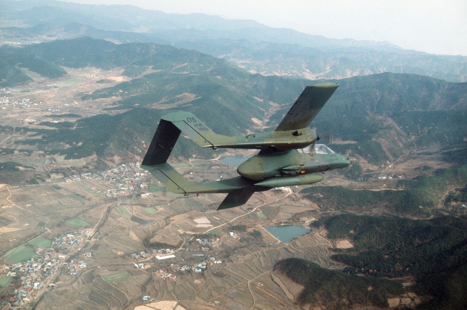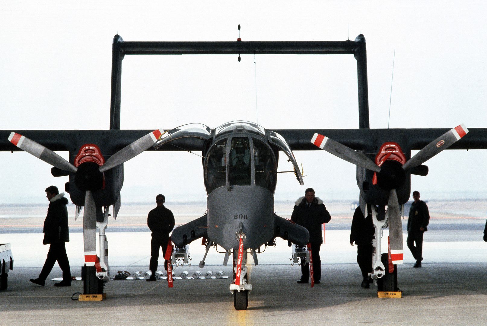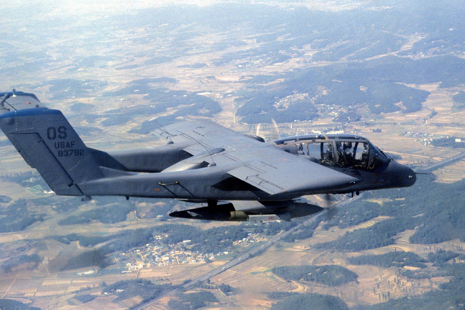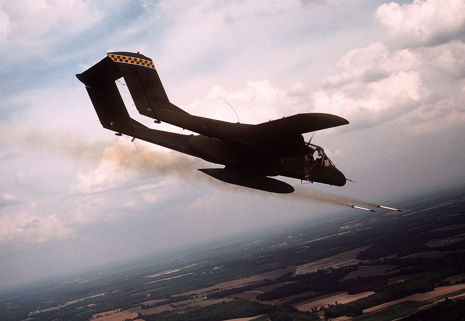 • The North American Rockwell OV-10 Bronco is an American twin-turboprop light attack and observation aircraft. It was developed in the 1960s as a special aircraft for counter-insurgency (COIN) combat, and one of its primary missions was as a forward air control (FAC) aircraft. It can carry up to 3,200 lb (1,450 kg) of external munitions and internal loads such as paratroopers or stretchers, and can loiter for three or more hours.