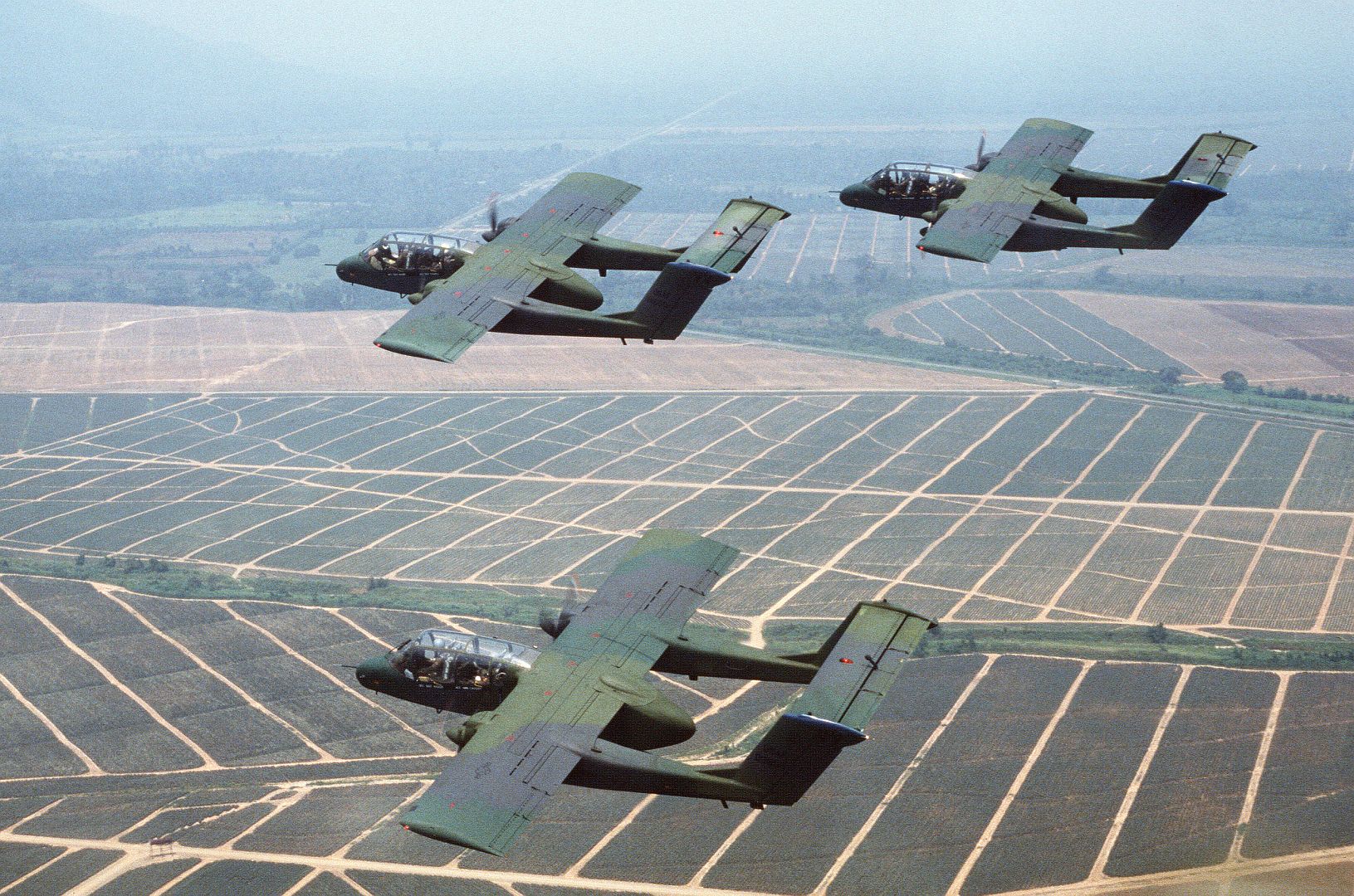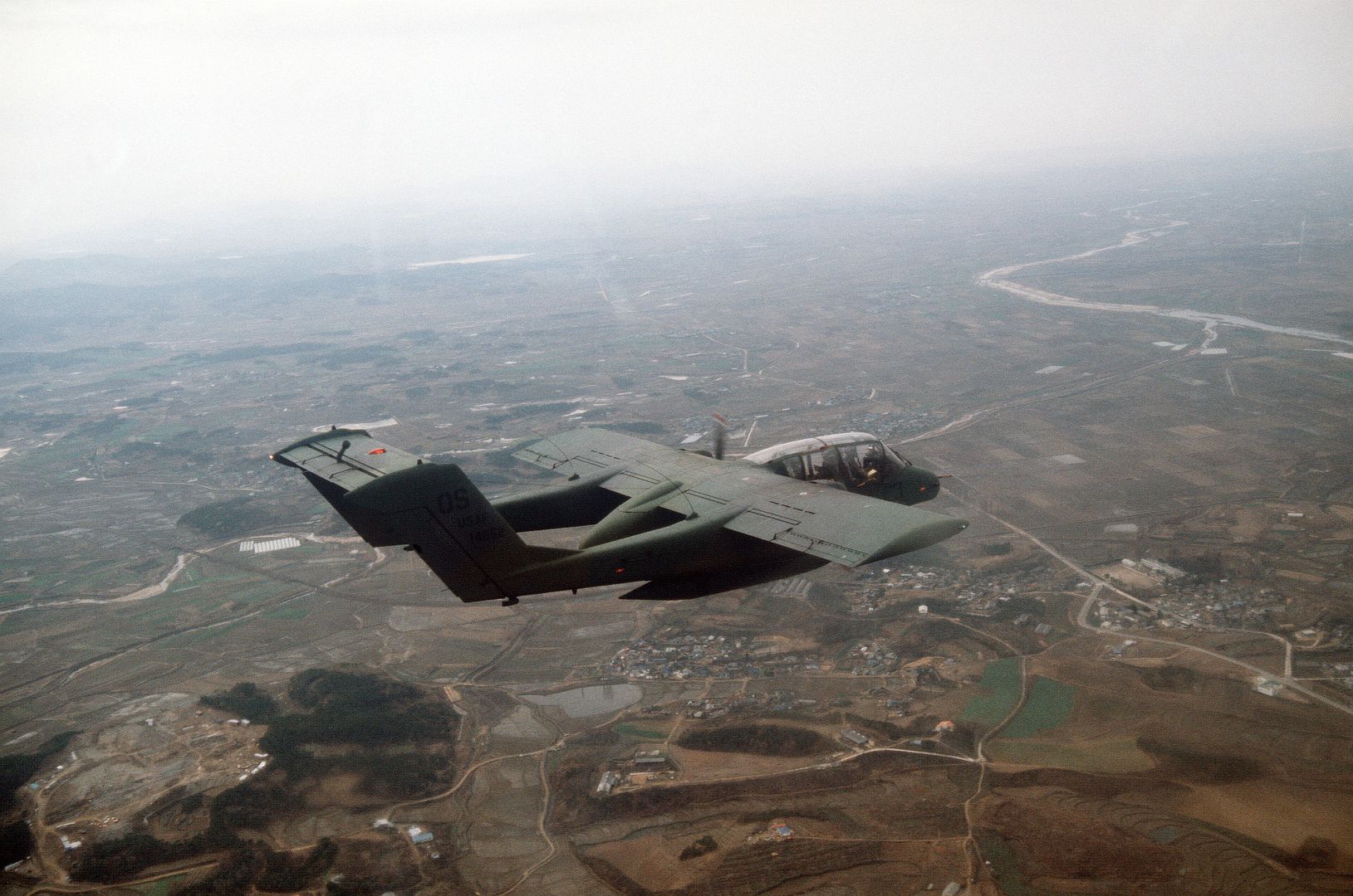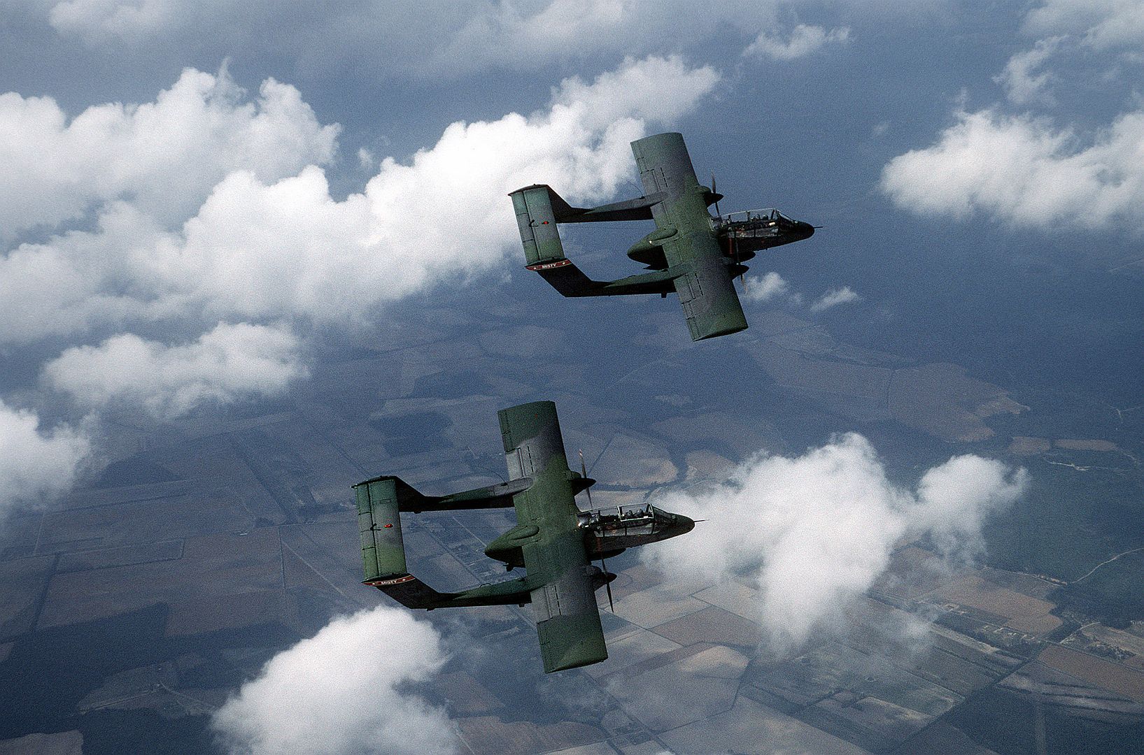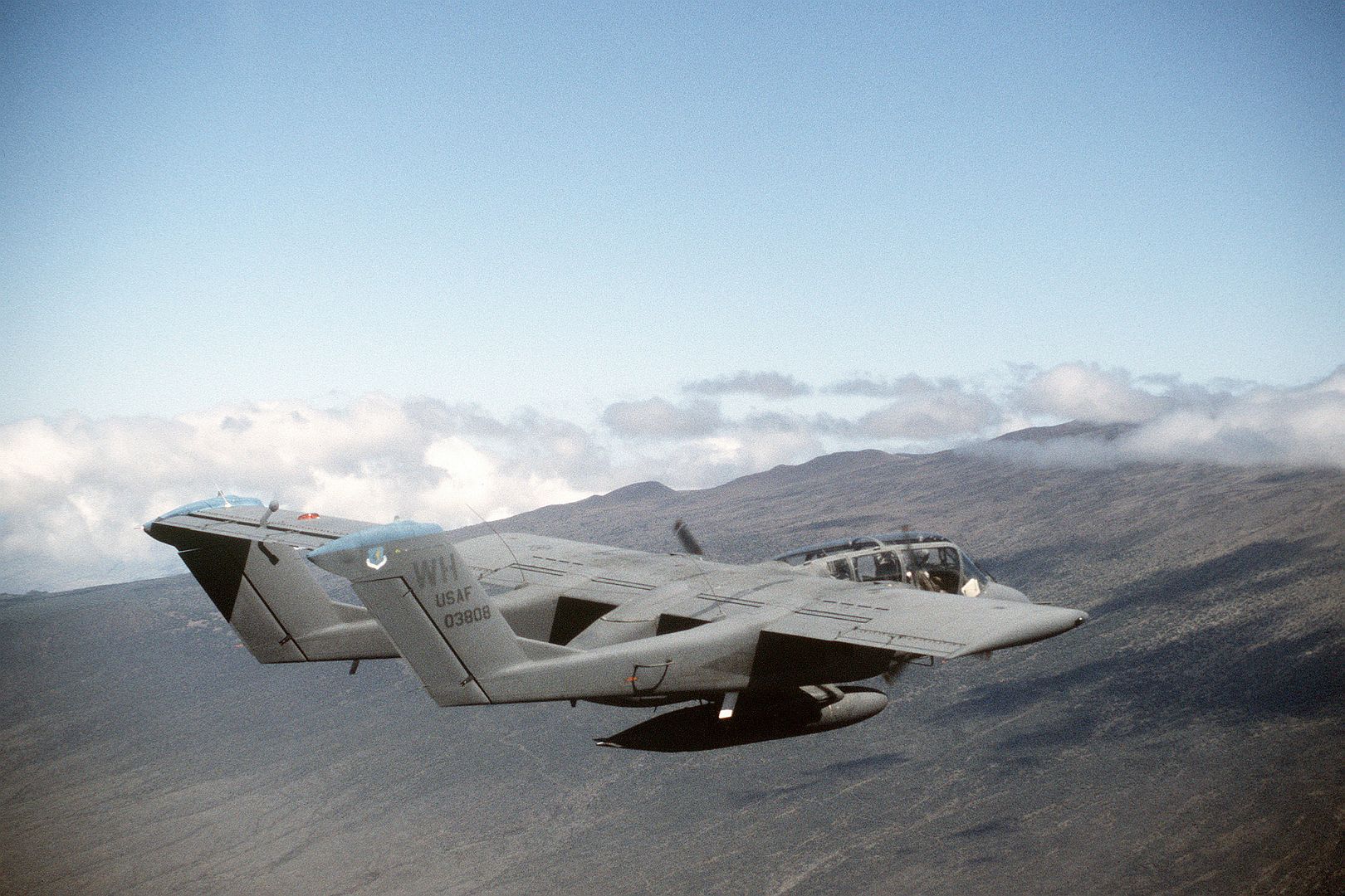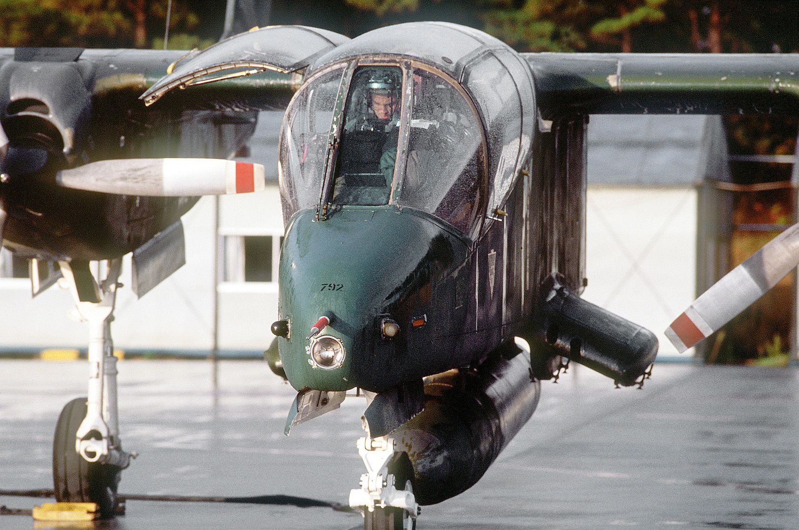 • The North American Rockwell OV-10 Bronco is an American twin-turboprop light attack and observation aircraft. It was developed in the 1960s as a special aircraft for counter-insurgency (COIN) combat, and one of its primary missions was as a forward air control (FAC) aircraft. It can carry up to 3,200 lb (1,450 kg) of external munitions and internal loads such as paratroopers or stretchers, and can loiter for three or more hours.
