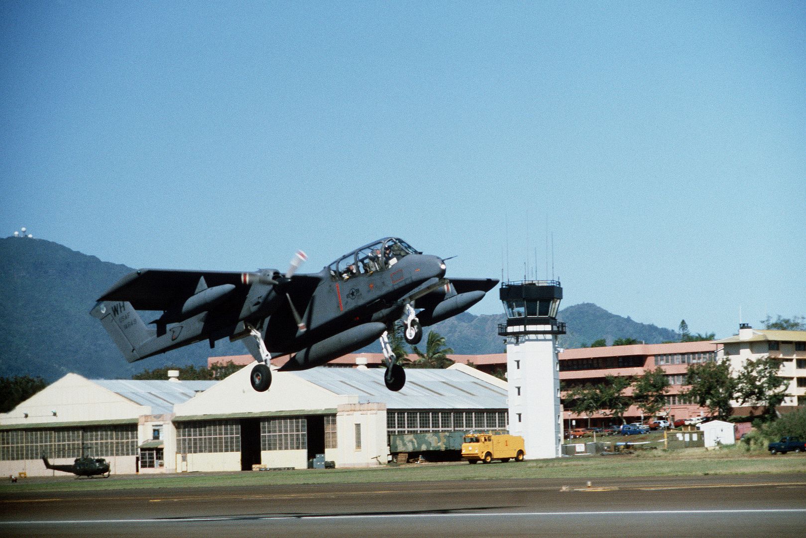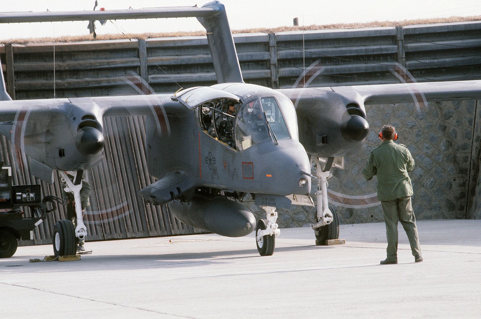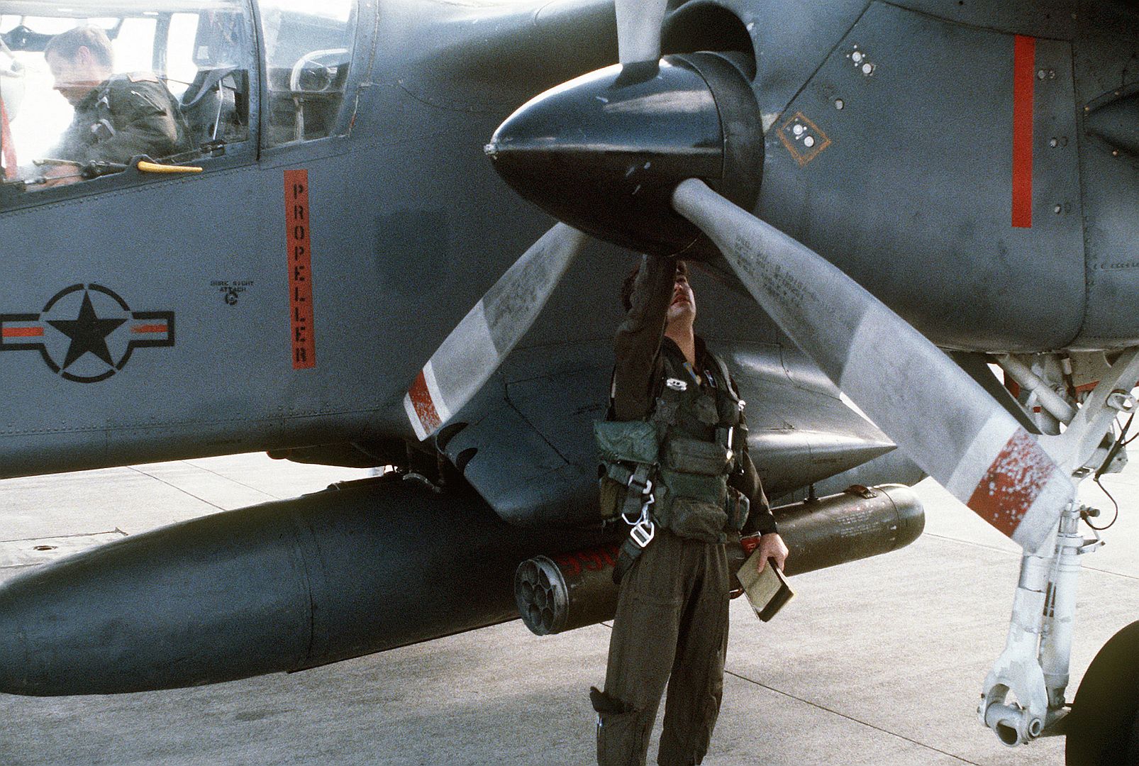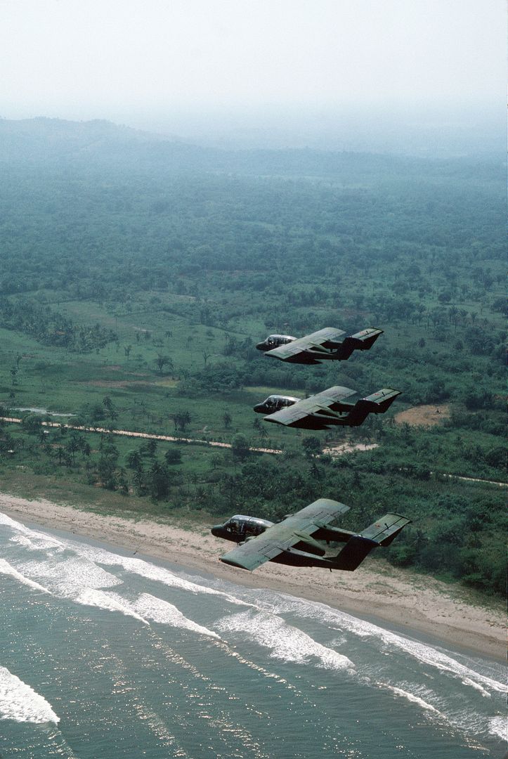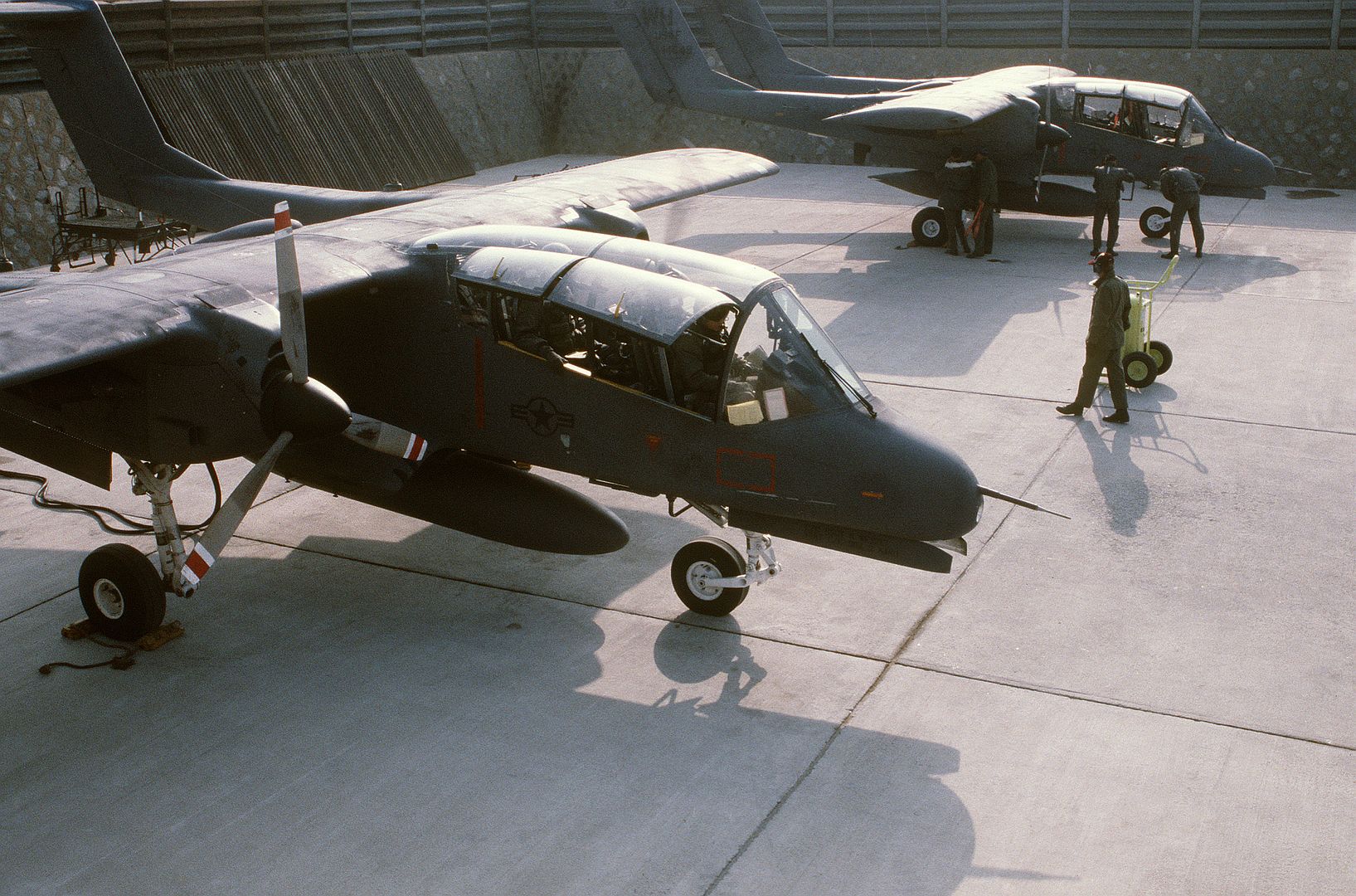 • The North American Rockwell OV-10 Bronco is an American twin-turboprop light attack and observation aircraft. It was developed in the 1960s as a special aircraft for counter-insurgency (COIN) combat, and one of its primary missions was as a forward air control (FAC) aircraft. It can carry up to 3,200 lb (1,450 kg) of external munitions and internal loads such as paratroopers or stretchers, and can loiter for three or more hours.