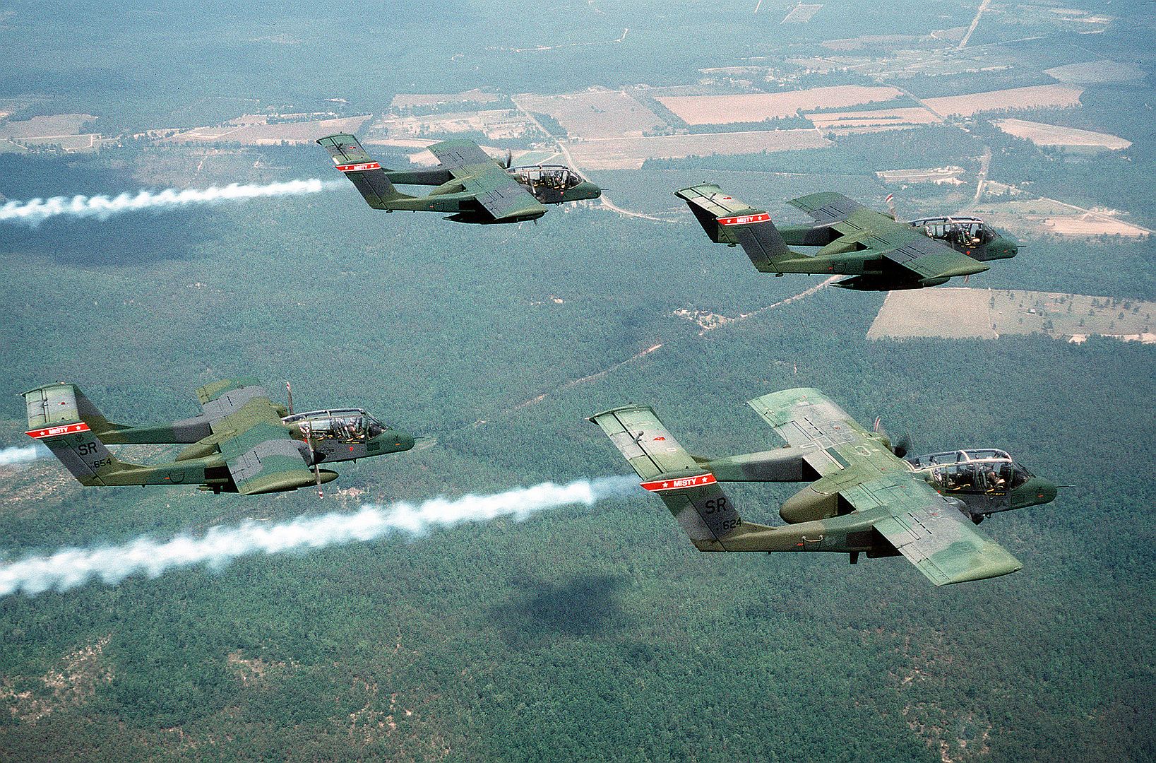 In 1991, the USAF provided the Colombian Air Force with 12 OV-10As. Later, three ex-USMC A-models were also acquired to provide parts support. Colombia operates the aircraft in a COIN role against an active insurgency. At least one aircraft has been lost in combat.The remaining OV-10As were upgraded to OV-10D standard. In November 2015, and after 24 years of service, the Colombian Air Force retired all of its remaining OV-10 aircraft.