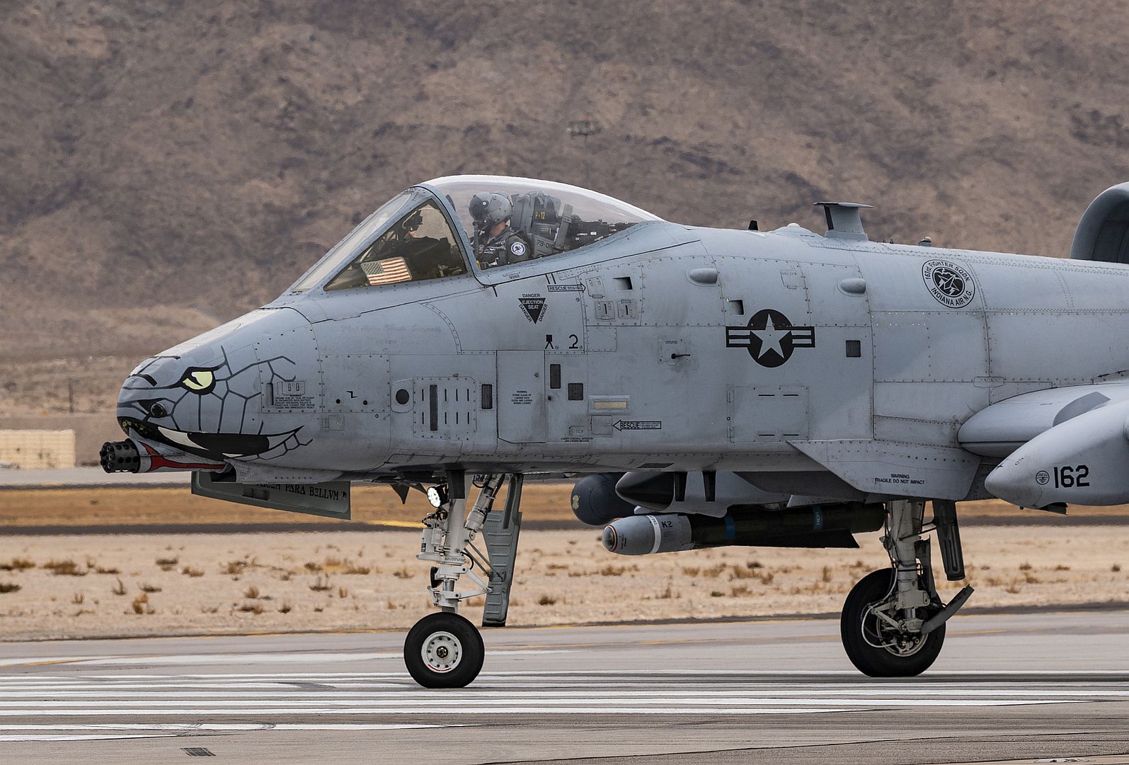 An A-10 Thunderbolt II, assigned to the 163rd Fighter Squadron, Indiana Air National Guard, Fort Wayne, Indiana, prepares to take-off for a Red Flag 21-1 mission at Nellis Air Force Base, Nevada, Feb. 1, 2021. The A-10 is the first Air Force aircraft specially designed for close-air-support of ground forces and provides common perspectives against shared threats while participating in the exercise. (U.S. Air Force photo by William R. Lewis)