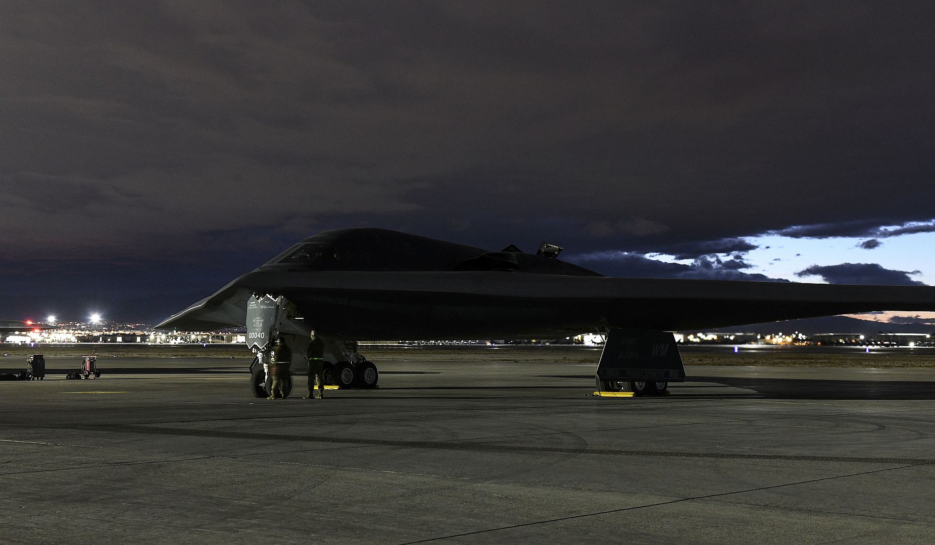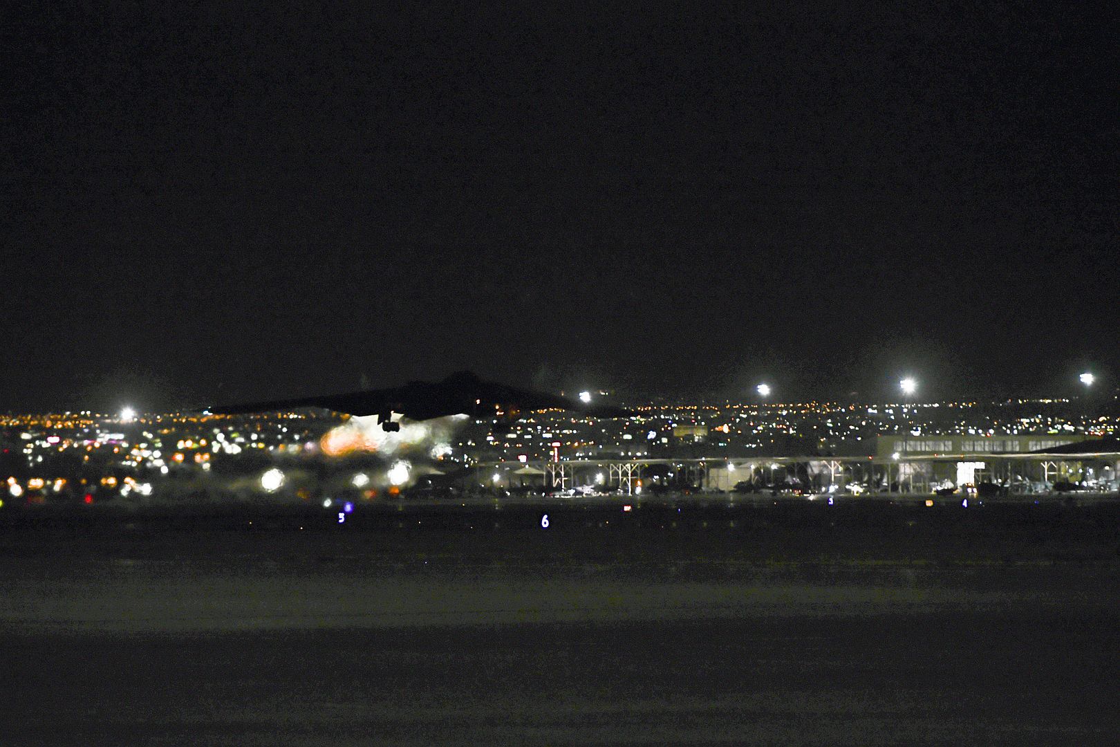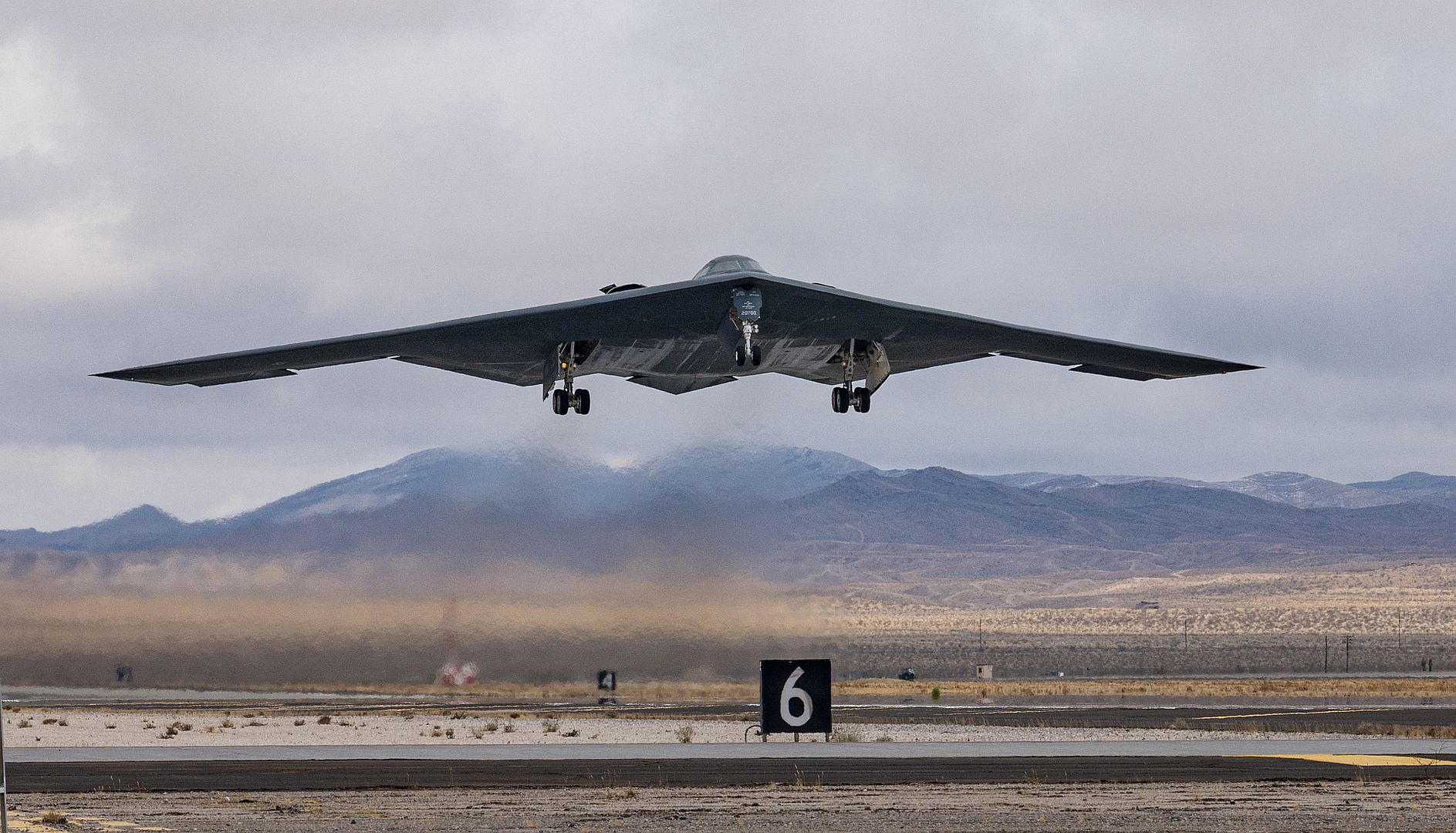 A B-2 Spirit Stealth Bomber takes off during Red Flag 21-1, at Nellis Air Force Base, Nevada, Feb. 1, 2021. The B-2’s stealth characteristics give it the ability to penetrate an enemy’s most sophisticated defense and threaten its most valued, heavily defended targets while avoiding adversary detection, tracking and engagement. During Red Flag 21-1, the 393rd Expeditionary Bomb Squadron flew B-2 Spirit Stealth Bomber training missions with multiple aircraft in order to further enhance their operability in future sorties. (U.S. Air Force photo by Staff Sgt. Sadie Colbert)