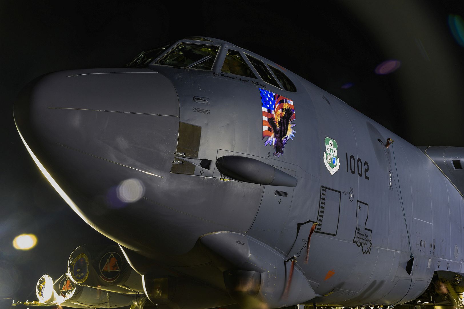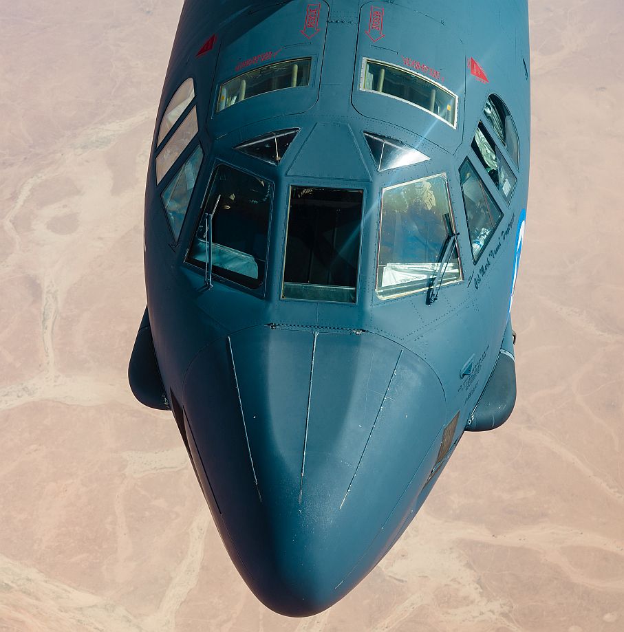 A U.S. Air Force B-52 Stratofortress from Barksdale Air Force Base, Louisiana, flies over the U.S. Central Command area of responsibility Jan. 27, 2021. The bomber deployment underscores the U.S. military's commitment to regional security and demonstrates a unique ability to rapidly deploy on short notice. The B-52 is a long-range, heavy bomber that is capable of flying at high subsonic speeds at altitudes of up to 50,000 feet and provides the United States with a global-strike capability. (U.S. Air Force photo by Master Sgt. Joey Swafford)