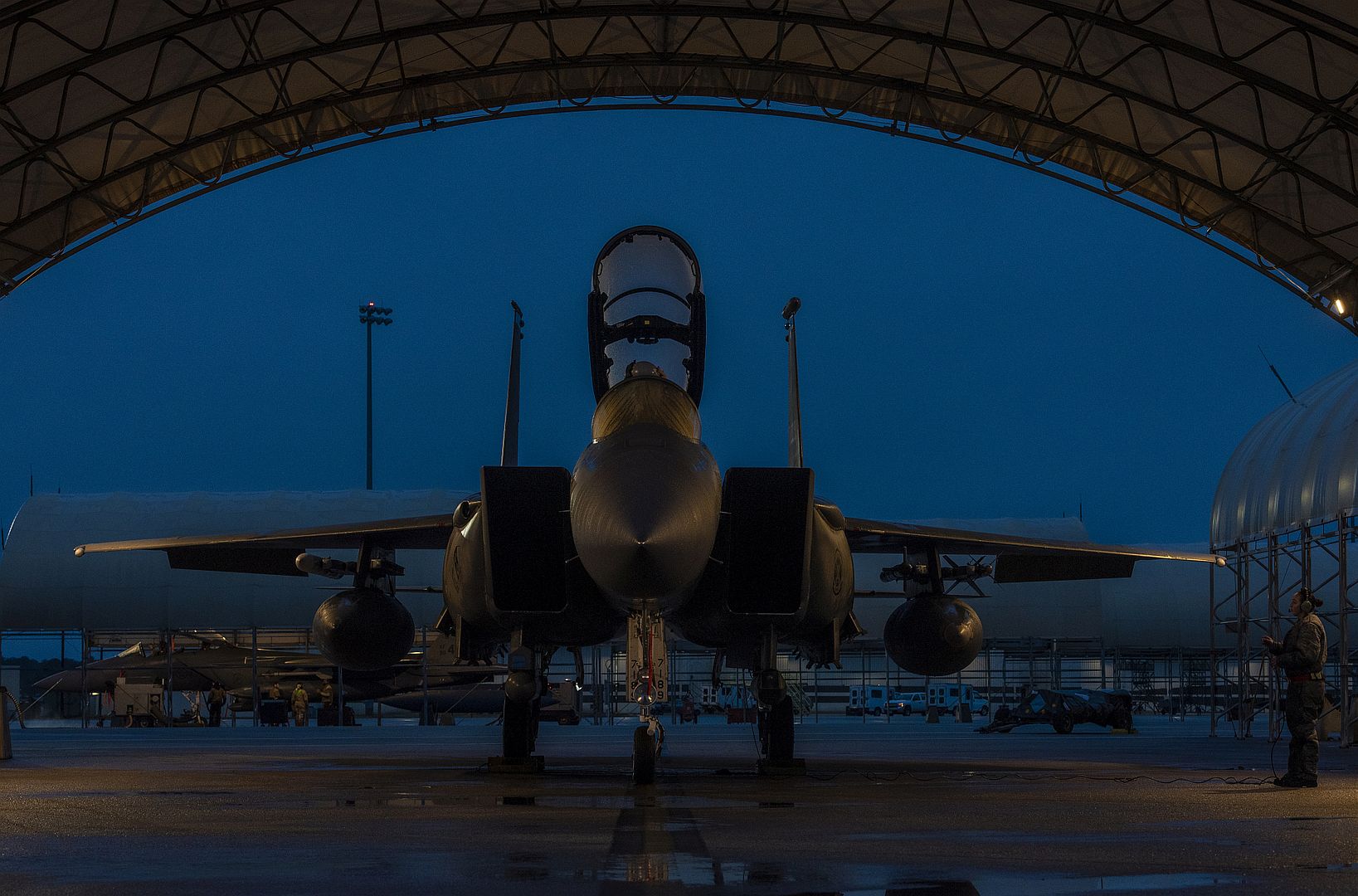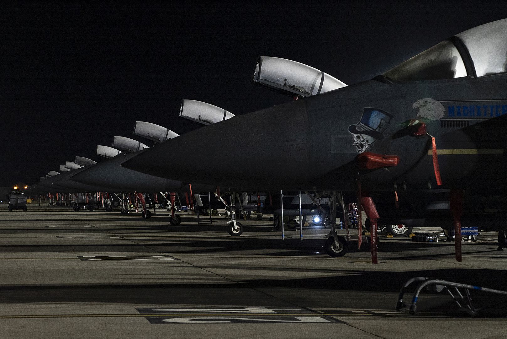 The 332d Air Expeditionary Wing Red Tail fighters, the F-15E Strike Eagles stay ready to spit fire at a moments notice, in an undisclosed location, somewhere in Southwest Asia.