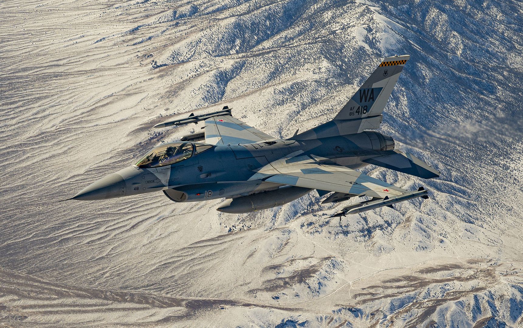 Main AdminAn F-16 Fighting Falcon fighter jet, assigned to the 64th Aggressor Squadron, flies over the Nevada Test and Training Range, Nevada, Feb. 1, 2021.The F-16 was designed as an air superiority day fighter; it evolved into a successful all-weather multirole aircraft. (U.S. Air Force photo by Airman First Class Zachary Rufus)