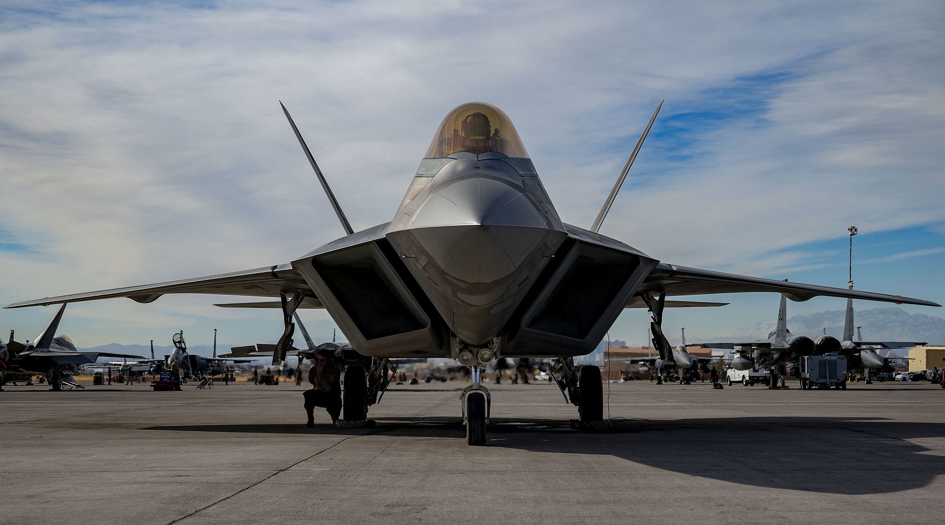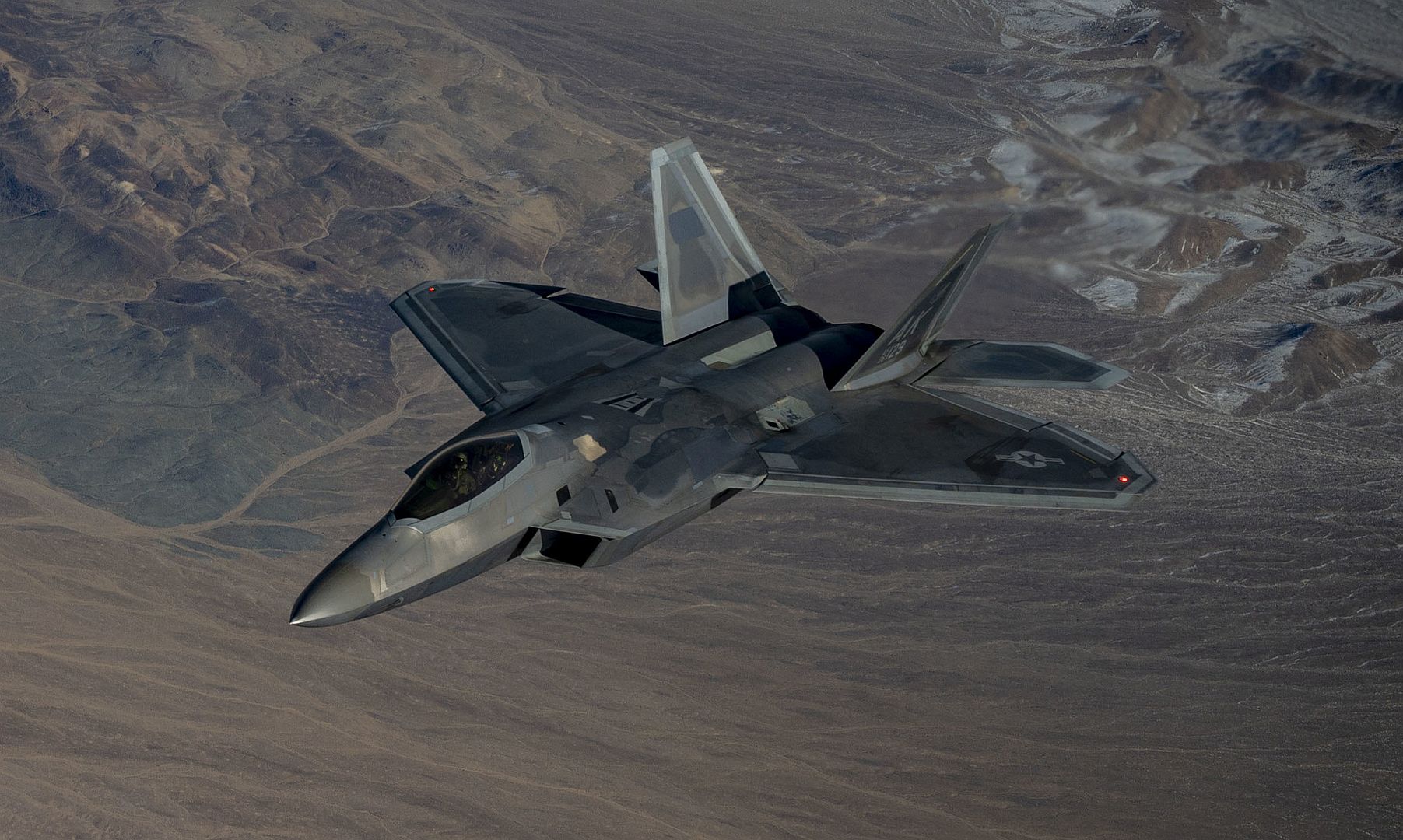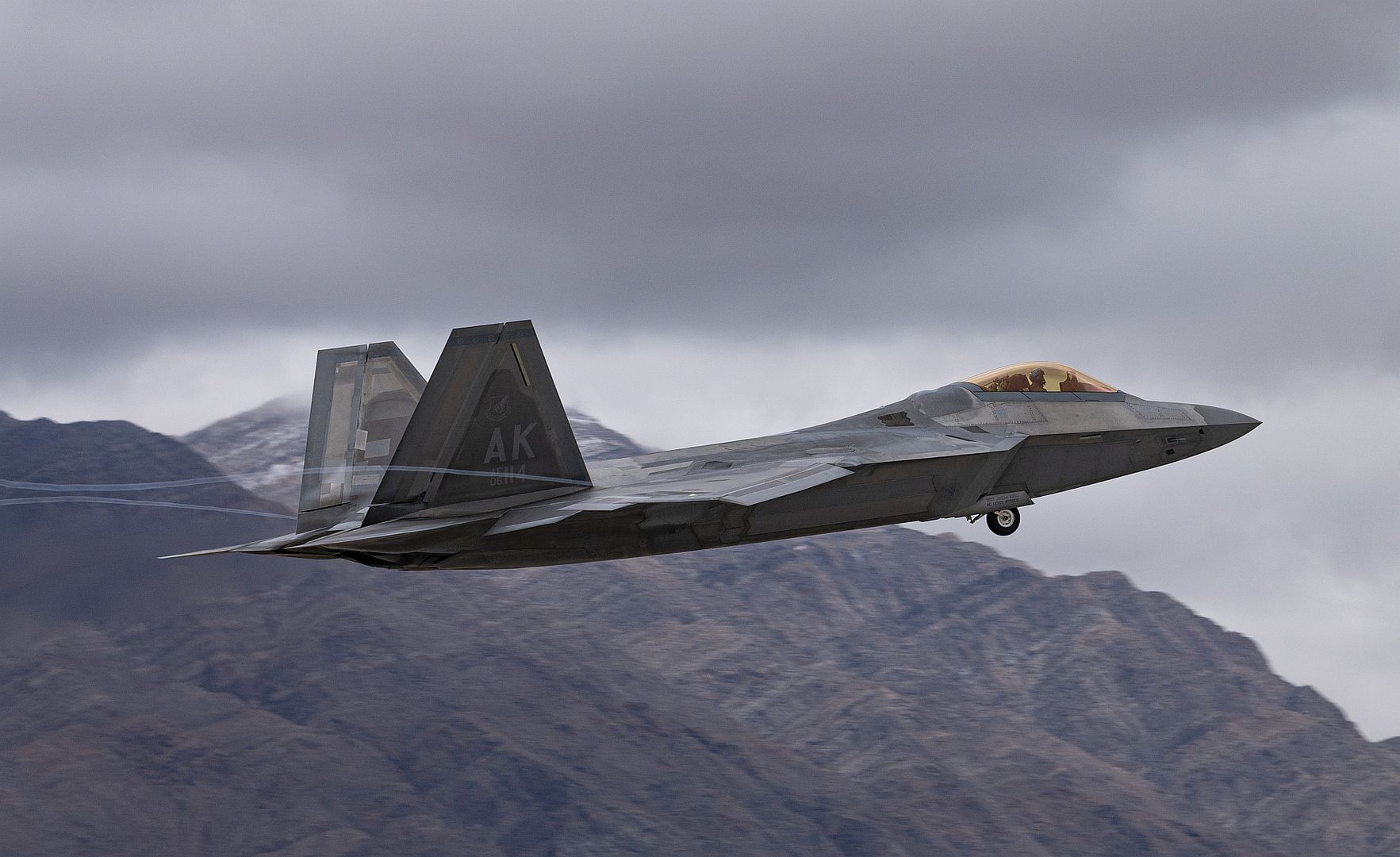 An F-22 Raptor assigned to the 525th Fighter Squadron at Joint Base Elmendorf-Richardson, Alaska, flies over the Nevada Test and Training Range, Nevada, Feb. 1, 2021. A combination of sensor capability, integrated avionics, situational awareness and weapons provides F-22 pilots with a first-look, first-shot, first-kill advantage over adversaries. (U.S. Air Force photo by Airman First Class Zachary Rufus)