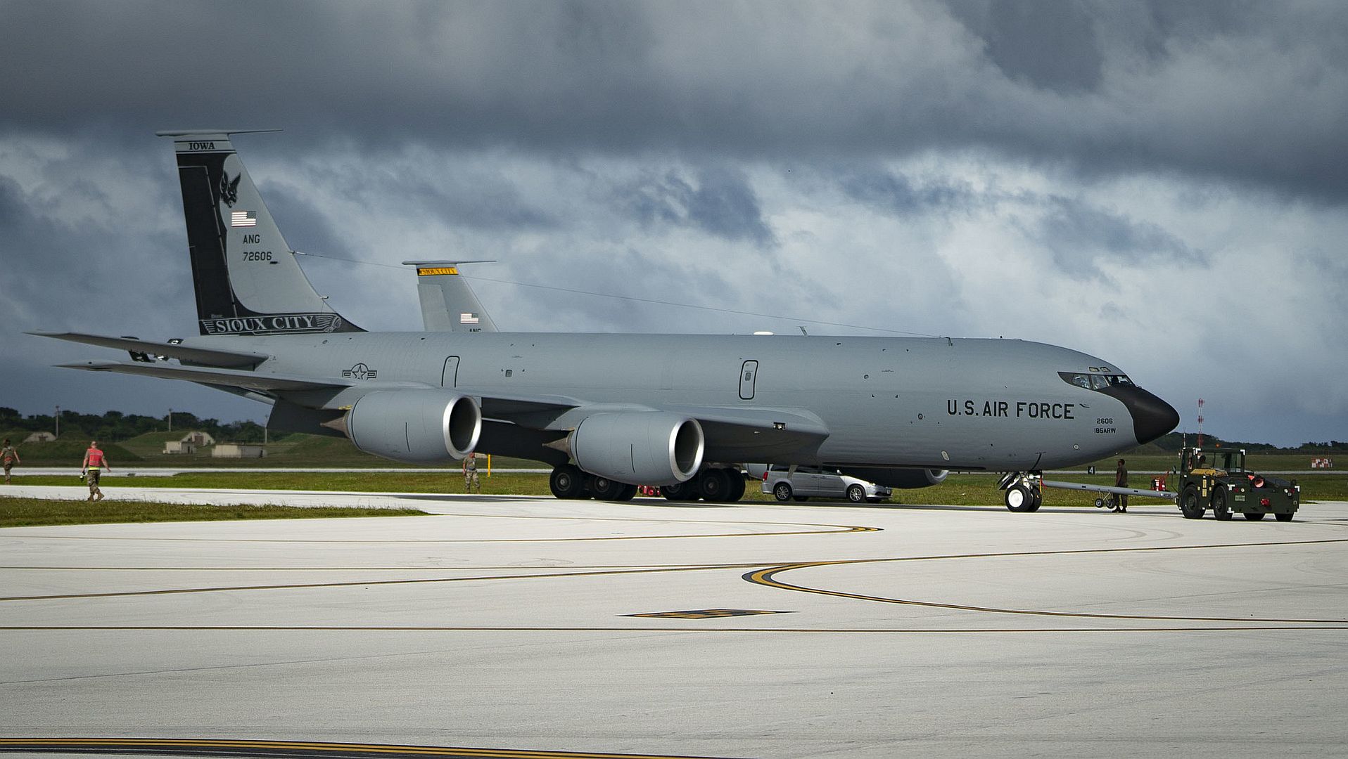 A U.S. Air Force KC-135 Stratotanker assigned to 185th Air Refueling Wing, Iowa Air National Guard lands at Andersen Air Force Base, Guam Feb. 1, 2021. The KC-135 plays a key role in providing aerial refueling support to aircraft operating in the Asia-Pacific region. (U.S. Air Force Photo by Master Sgt. Richard P. Ebensberger)