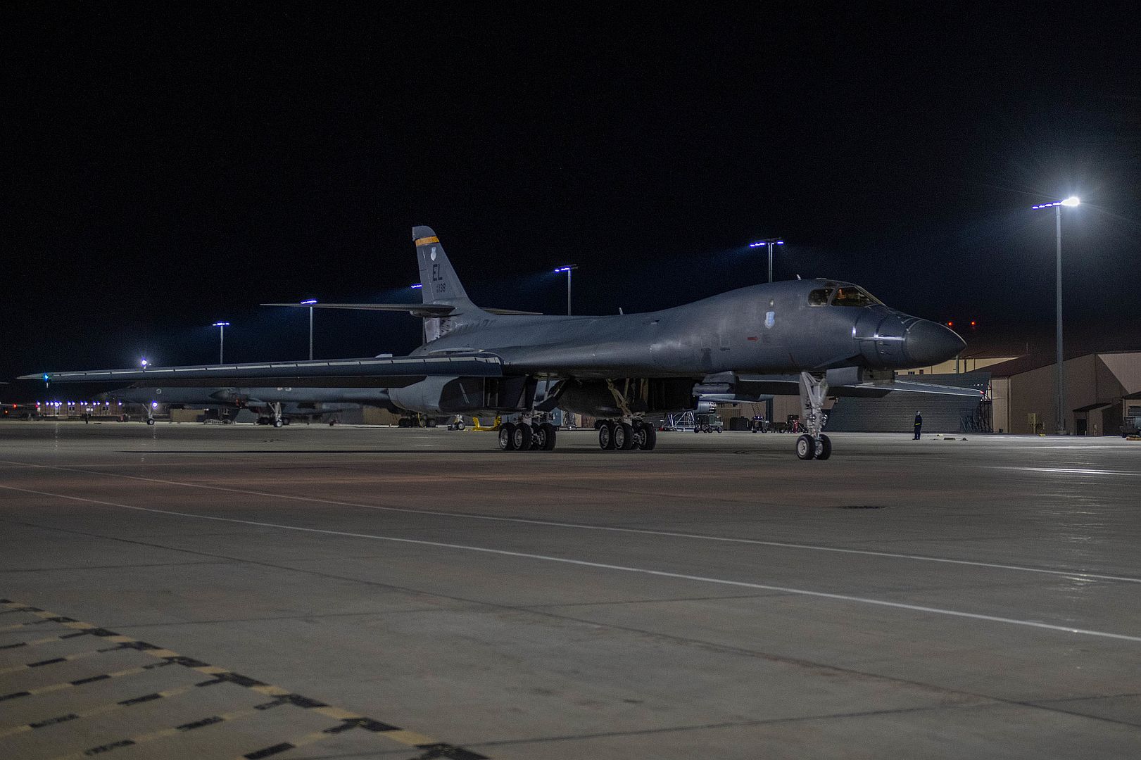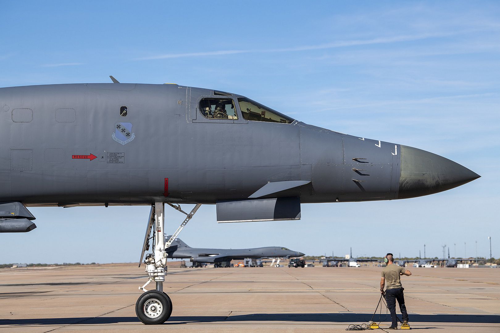 A B-1B Lancer taxis out to the flight line at Ellsworth Air Force Base, S.D., Nov. 22, 2021. The B-1B is a long-range, multi-role bomber that carries the largest payload of precision guided and unguided munitions in the Air Force inventory. (U.S. Air Force photo by Senior Airman Quentin Marx)