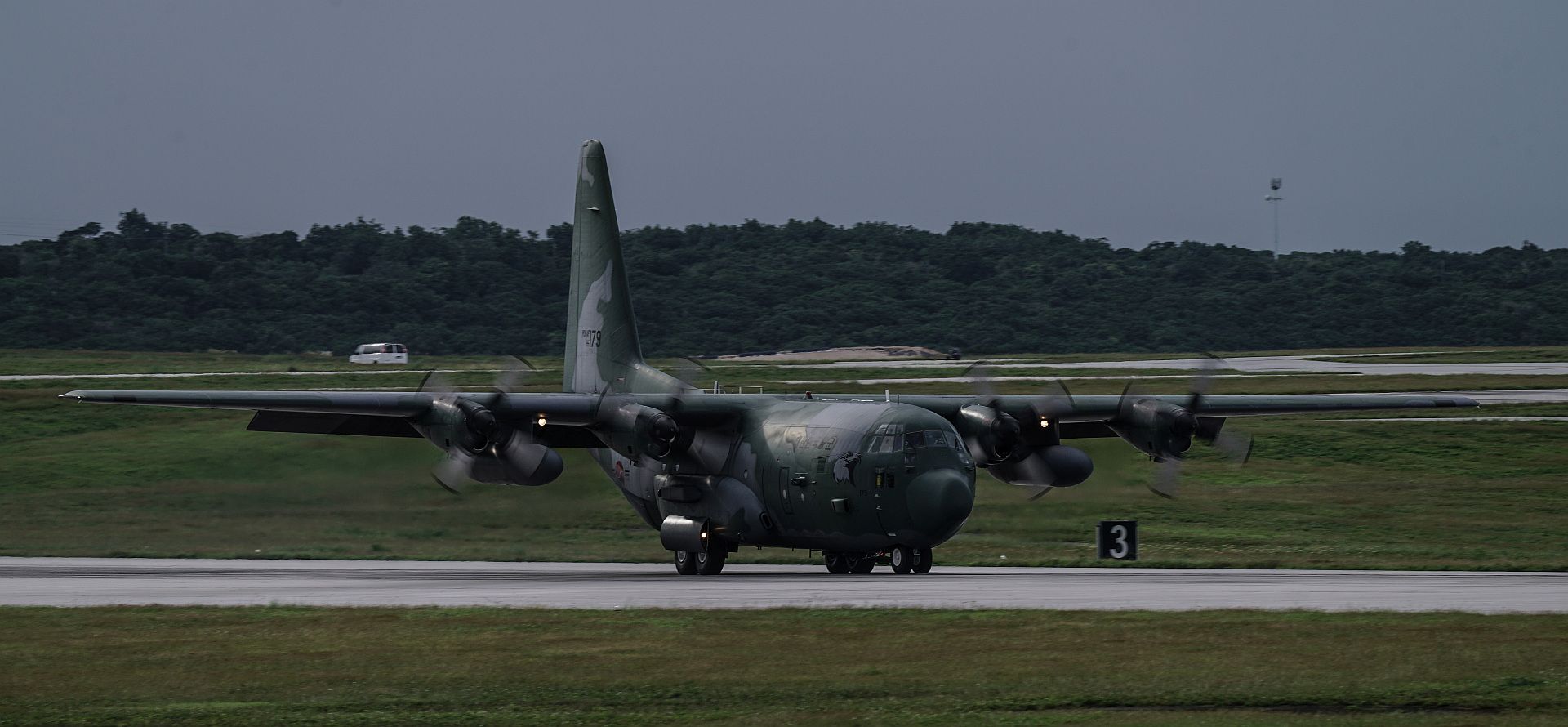 A Republic of Korea Air Force C-130 Hercules arrives at Andersen Air Force Base, Guam in preparation for Operation Christmas Drop, Dec. 1, 2021. The international effort will allow Pacific Air Forces Airmen from the 36th Wing, Andersen AFB, Guam; 15th Wing from Joint Base Pearl Harbor-Hickam, Hawaii; and the 374th Airlift Wing from Yokota Air Base, Japan, to work with partner nations to execute low-cost, low-altitude training air drops, a critical training event improving interoperability and communication for future real world humanitarian assistance and disaster relief missions. (U.S. Air Force photo by Master Sgt. Richard P. Ebensberger)