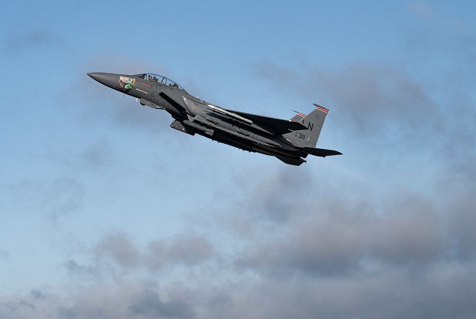 Main AdminA U.S. Air Force F-15E Strike Eagle assigned to the 492nd Fighter Squadron conducts daily flight operations at Royal Air Force Lakenheath, England, Nov. 29, 2021. The 48th Fighter Wing has a critical mission of delivering combat air power when called upon by the U.S. Air Forces in Europe-Air Forces Africa. (U.S. Air Force photo by Senior Airman Koby I. Saunders)