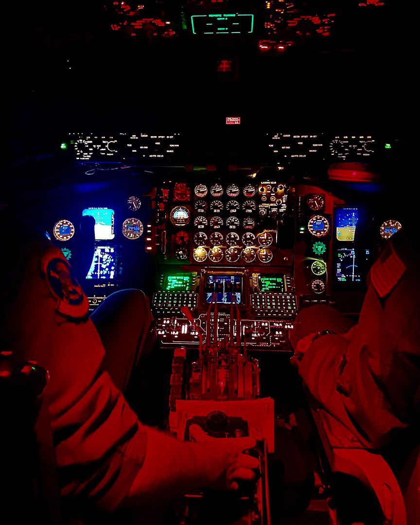 U.S. Air Force pilots with the 927th Air Refueling Wing, operate a KC-135 Stratotanker during a night mission over the Atlantic Ocean on November 29, 2021. Pilots are required to do a certain number of night missions a year to maintain their skill level. (U.S. Air Force photo by Staff Sgt. Tiffany A. Emery