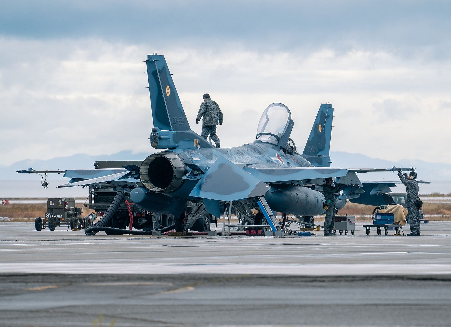 Main AdminJapan Air Self-Defense Force crew chiefs prepare an F-2 for takeoff during the Tsuiki Aviation Training Relocation event on the Tsuiki Air Base flightline, Dec. 12, 2023. The F-2 participated in the ATR event alongside the U.S. Air Force’s F-35A Lightning II to familiarize the pilots of both aircraft with each other through planning and flight exercises, further developing mutual trust and strengthening the U.S.-Japan Security Alliance. (U.S. Air Force photo by Tech. Sgt. Kyle Johnson)