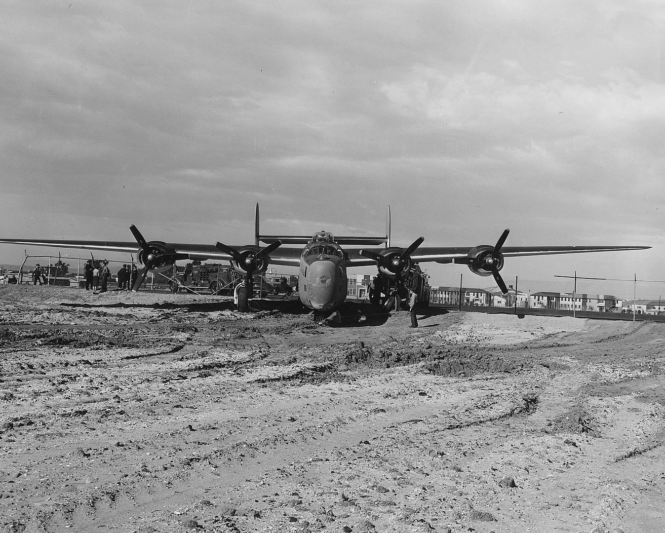 B-17 Flying Fortress drones on the line at Kwajalein, Marshall Islands; the planes will be used during the atomic bomb test at Bikini in July 1946.