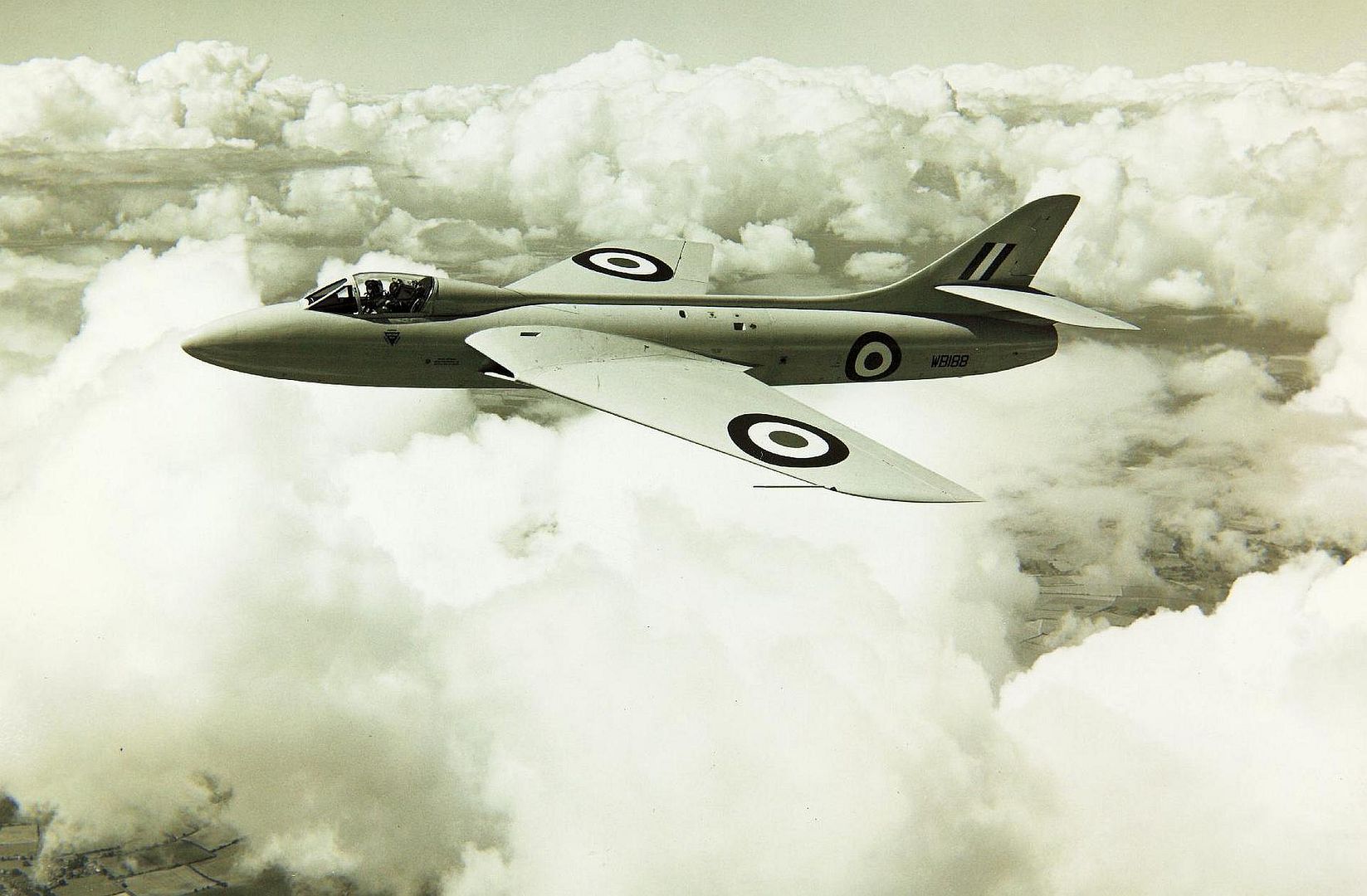 WB188 is the P.1067 Hunter prototype. Neville Duke flying and Cyril Peckham taking these exquisite shots.