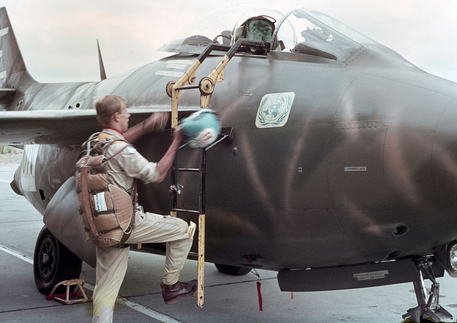 The Tunnan was the first Swedish jet aircraft to perform combat operations. In September 1961, in response to an appeal by the United Nations (UN) for military support, an initial force of five J 29Bs were stationed in the Republic of Congo as a contribution to a UN peacekeeping mission (ONUC) in the region, organized as the F 22 Wing of the Swedish Air Force. It was subsequently reinforced by four more J 29Bs and two S 29C photo reconnaissance Tunnans in 1962. The J 29s were the only combat aircraft at the disposal of the UN, the J 29Bs dispatched receiving the UN identifying legend upon their fuselages.