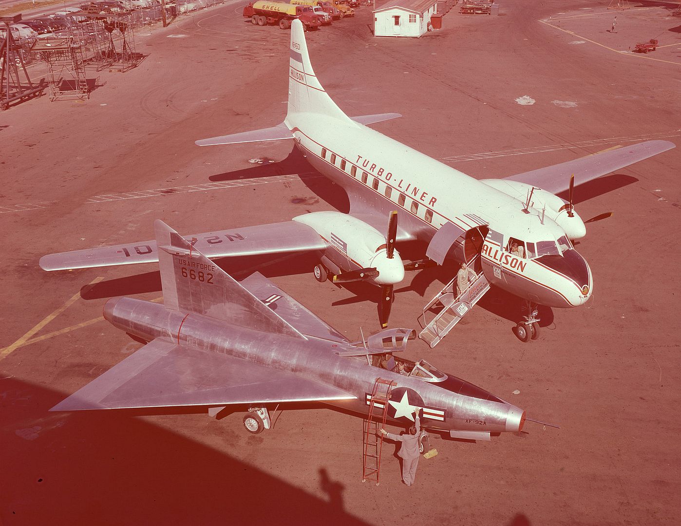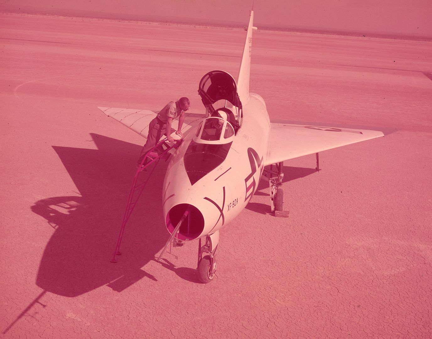 An unusual application of the XF-92A was as a movie model, stepping into the role of the "MiG-23" in the Howard Hughes film, Jet Pilot, starring John Wayne and Janet Leigh. Due to the lengthy delay in releasing the film, by the time it appeared in 1957, the XF-92A's role had been left on the cutting room floor.It did appear in the film Toward the Unknown (1956) starring William Holden, again in the guise of another aircraft, this time, the F-102 Delta Dagger.
