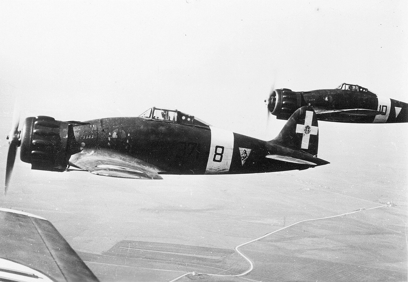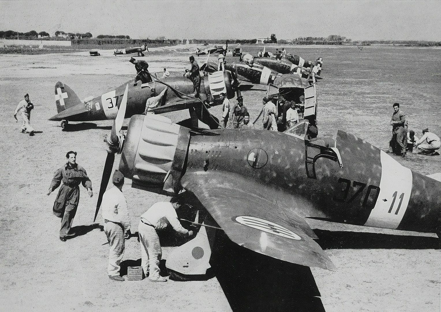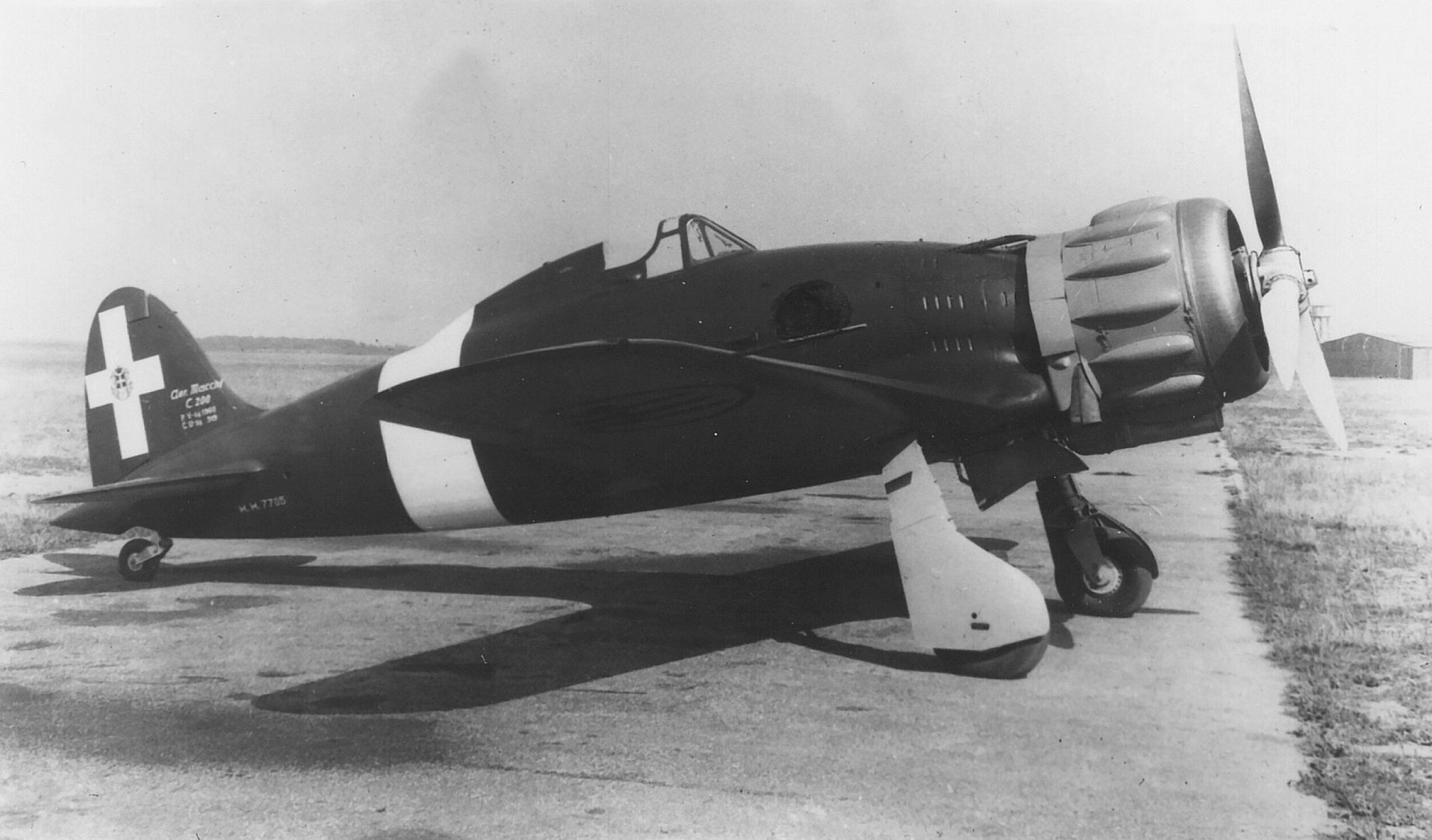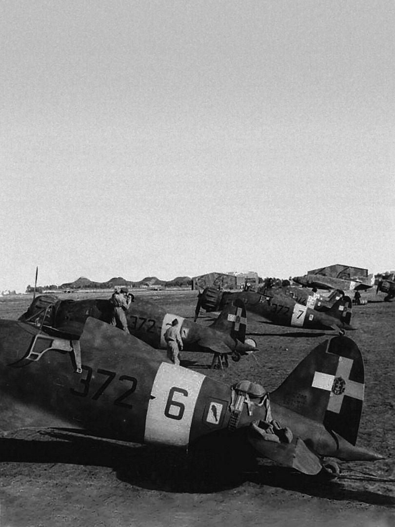 In August 1939, about 30 C.200 Saettas were delivered to the 10th Gruppo of the 4th Stormo, stationed in North Africa.However, pilots of this elite unit of the Regia Aeronautica opposed the adoption of the C.200, preferring the more manouvrable Fiat CR.42 instead. Accordingly, the Macchis were then transferred to the 6th Gruppo of the 1st Stormo in Sicily, who were enthusiastic supporters of the new fighter, and to the 152nd Gruppo of the 54th Stormo in Vergiate. Further units received the type during peacetime, including the 153rd Gruppo and the 369th Squadriglia.