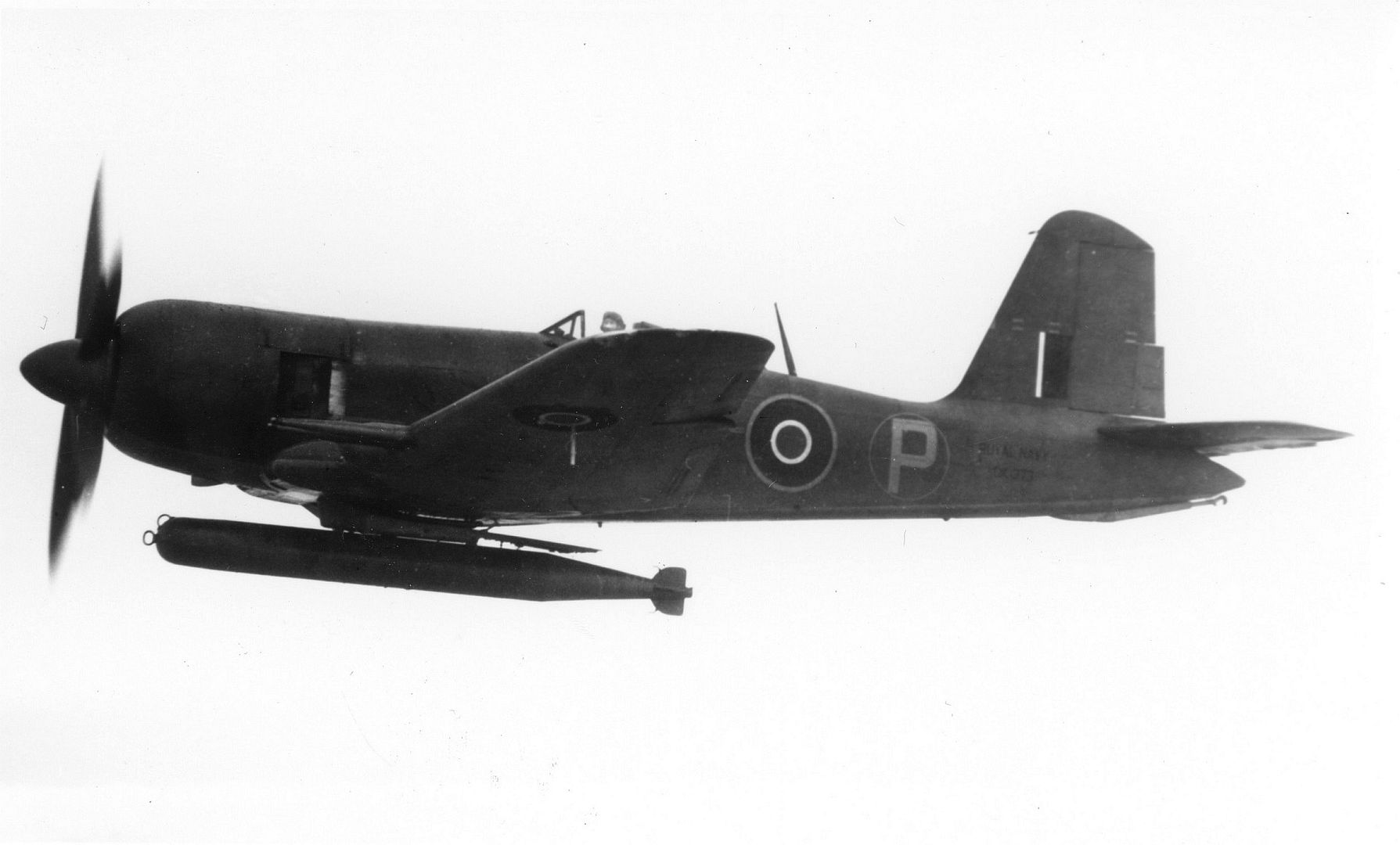 As with most of the British fighters of the time, cannon armament was the standard firepower for the Firebrand. This consisted of 4 x 20mm Hispano Mk II series cannons mounted in pairs on each wing. For a more direct increase to its lethality, the Firebrand could sport a single 1,850lb 18" Mark XVII series torpedo running centerline under the fuselage or 2 x 1,000lb bombs under the wings - one to a wing pylon.