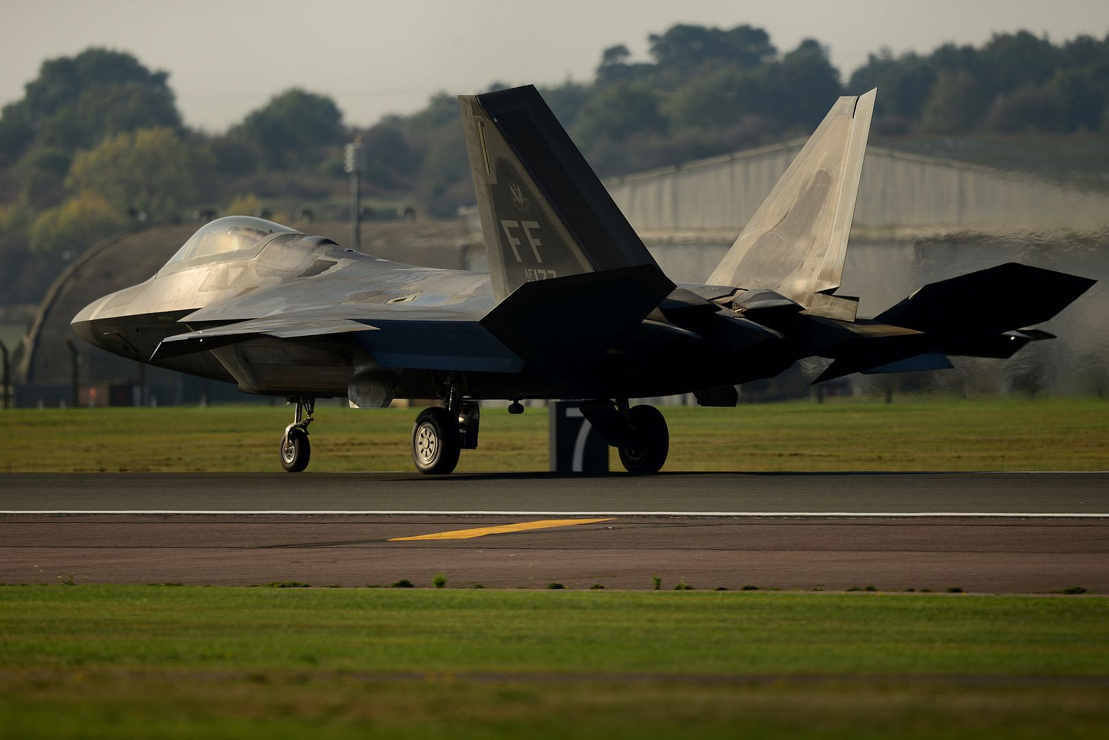 Main AdminAn F-22 Raptor assigned to the 1st Fighter Wing, Joint Base Langley-Eustis, Va. returns from a training sortie at Royal Air Force Lakenheath, England, Oct. 16, 2018. The Raptors are training with U.S. allies and partners as a demonstration of U.S. commitment to European regional security. (U.S. Air Force photo's/Tech. Sgt. Matthew Plew)