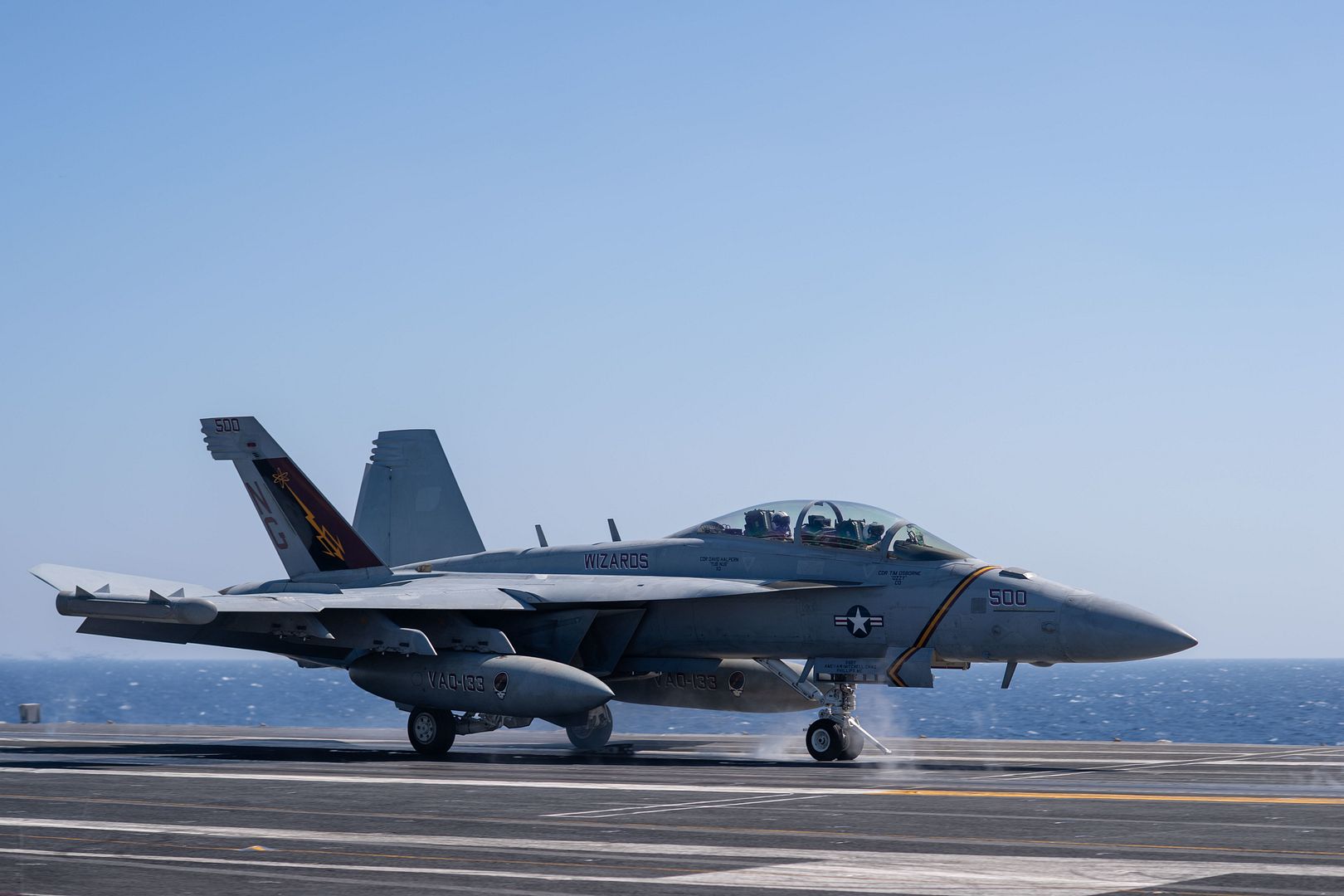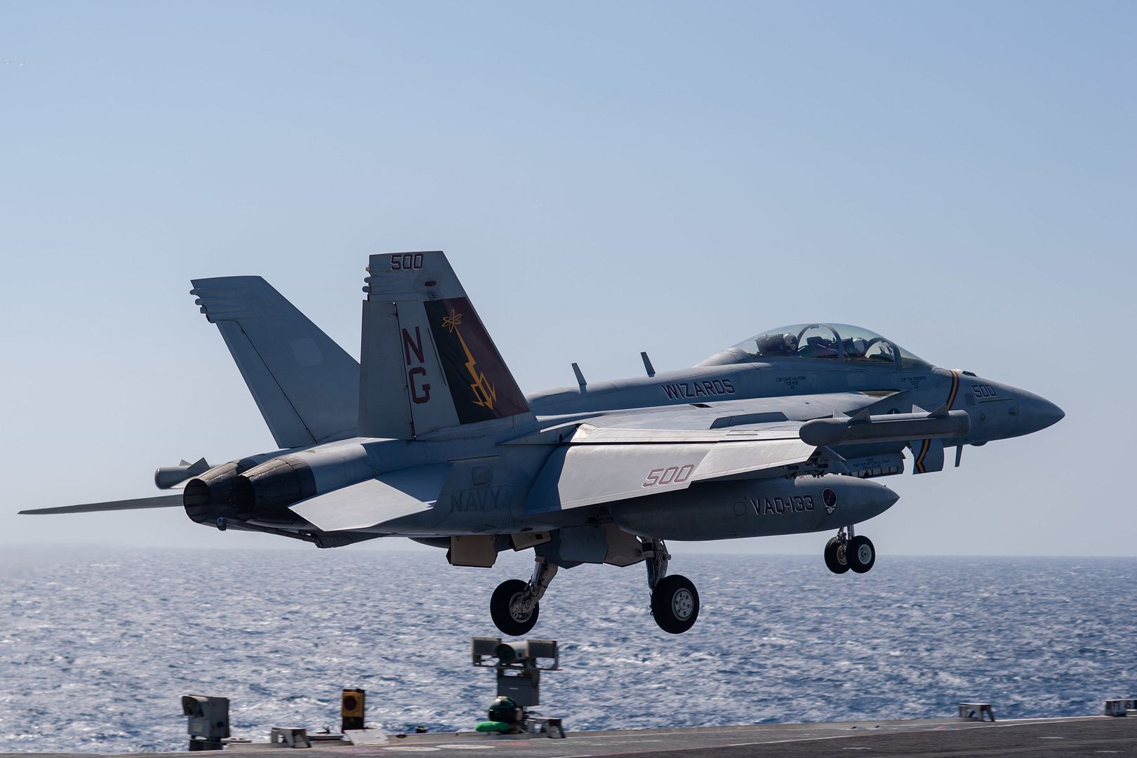 Main AdminAn F/A-18E Super Horner, assigned to Strike Fighter Squadron (VFA) 97, catches an arresting gear wire while landing on the flight deck of the aircraft carrier USS John C. Stennis (CVN 74) in the Red Sea, April 18, 2019. The John C. Stennis Carrier Strike Group is deployed to the U.S. 5th Fleet area of operations in support of naval operations to ensure maritime stability and security in the Central Region, connecting the Mediterranean and the Pacific through the western Indian Ocean and three strategic choke points. (U.S. Navy photo by Mass Communication Specialist 3rd Class Grant G. Grady)