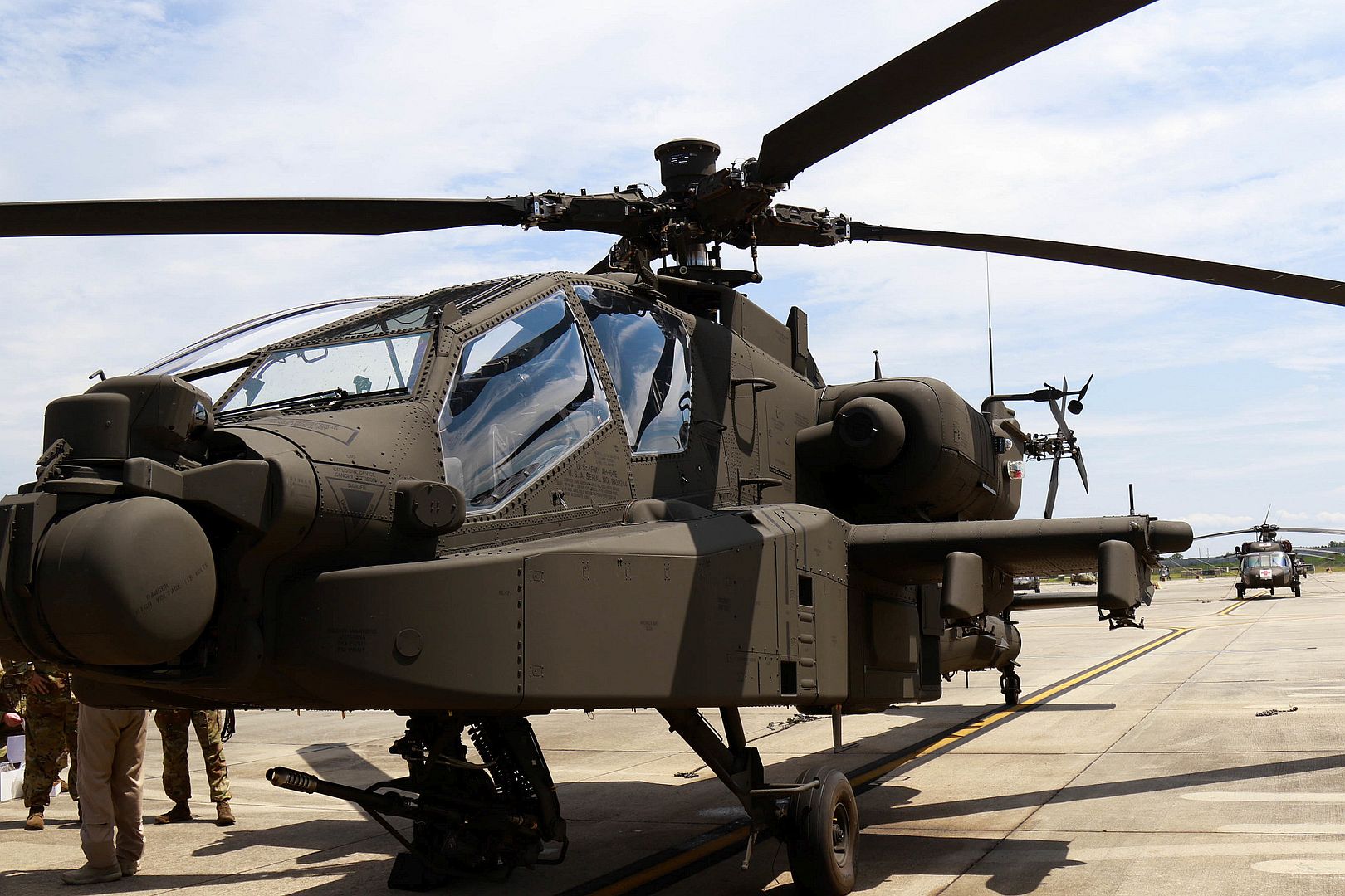 1st Squadron, 17th Cavalry Regiment, 82nd Combat Aviation Brigade receives their initial fielding of the new Echo Model Apache, replacing the previous generation's Delta Apache helicopter. While not the first in the Army, they are the first on Fort Bragg to receive these new aircraft. The AH-64E is designed to increase power margins, reliability and lethality to ensure the Apache is a viable combat fighting force in Large Scale Combat Operations. The AH-64E is considered the bridging strategy to Future Vertical Lift. The unit currently has Apache aviators in training to fly the new aircraft, and those pilots will soon bring this dynamic capability to the Global Response Force. Equipment modernization is a key component to winning tomorrow's fight, and the 82nd Airborne Division is leading the way in this effort. (Photo by Staff Sgt. Sharon Matthias)