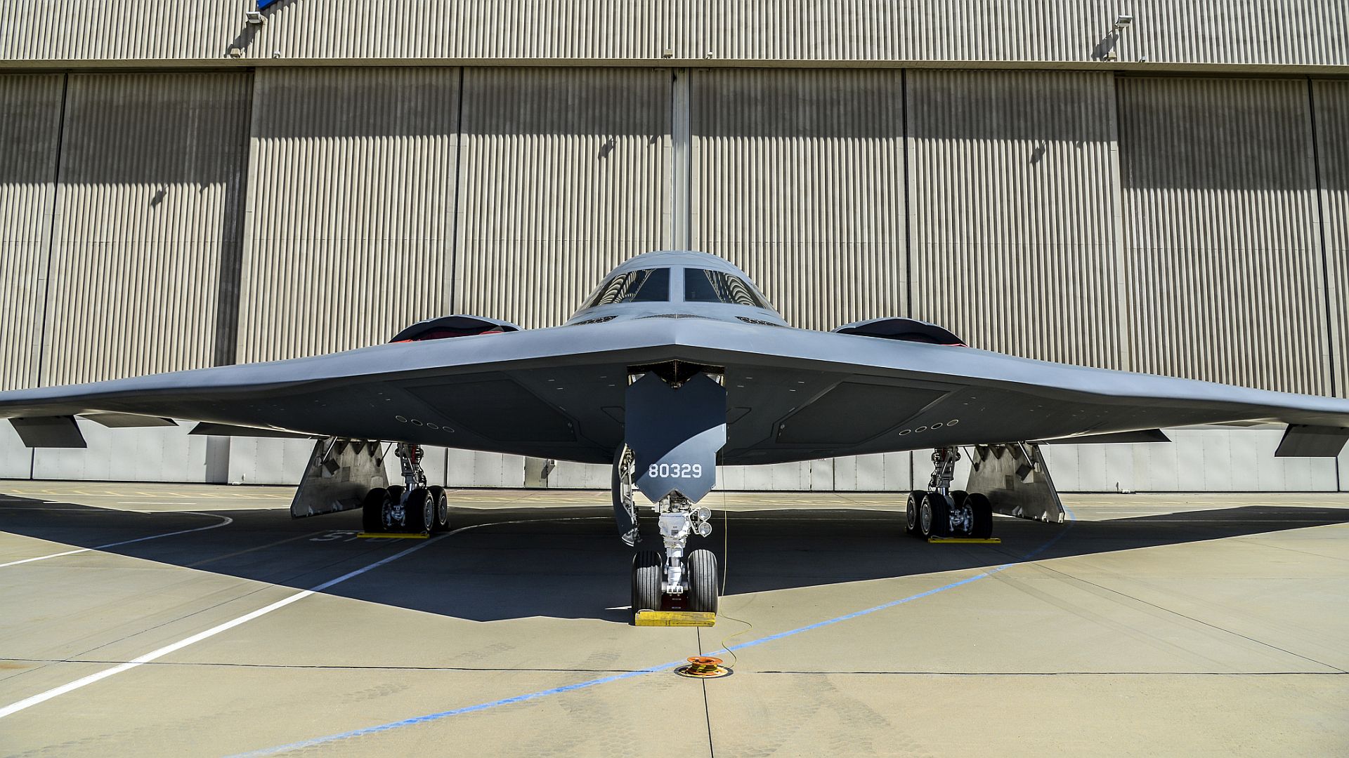 Main AdminA B-2 Spirit is displayed in front of a hangar at Plant 42 in Palmdale, California, Aug. 20. The plane was on display in support of the B-2 Spirit's 30th anniversary celebration. (U.S. Air Force photo by Giancarlo Casem)