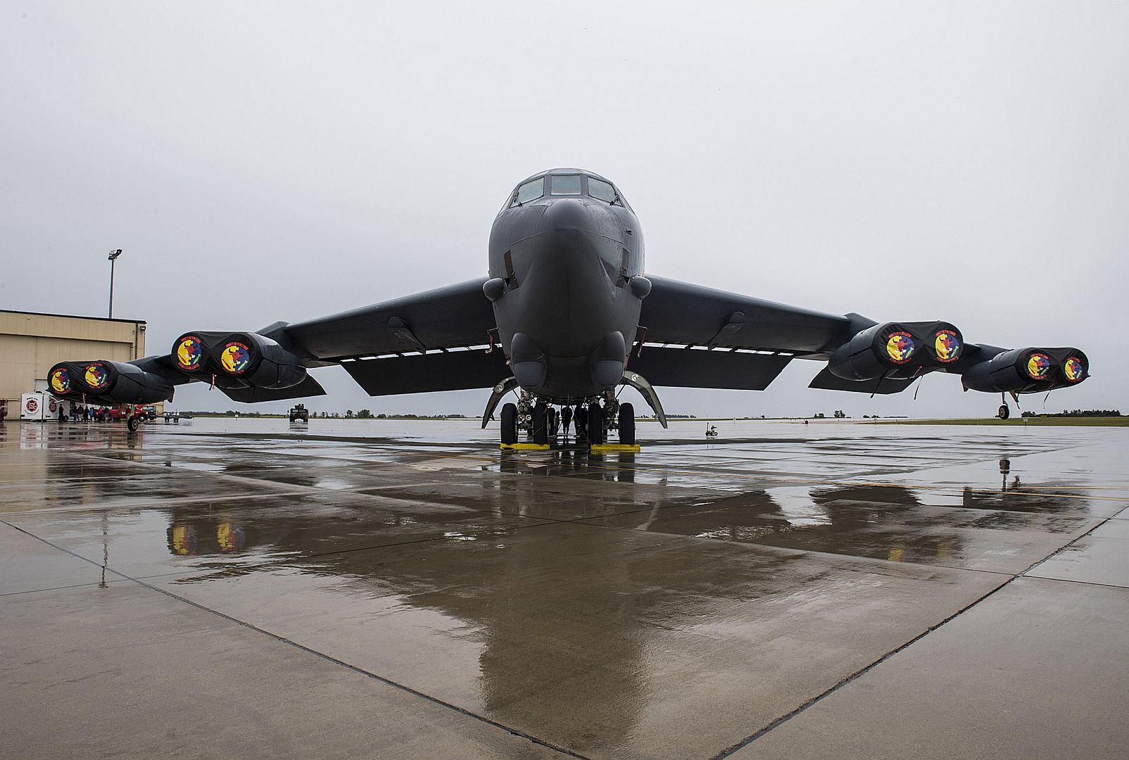 A B-52H Stratofortress is displayed during the 5th Bombardment Group 100th-year anniversary open house at Minot Air Force Base, North Dakota, Aug. 18, 2019. The event showcased some of Team Minot?s various assets, including the 54th Helicopter Squadron, 91st Missile Security Forces Squadron and 5th Security Forces Squadron. (U.S. Air Force photo's by Senior Airman Jonathan McElderry)