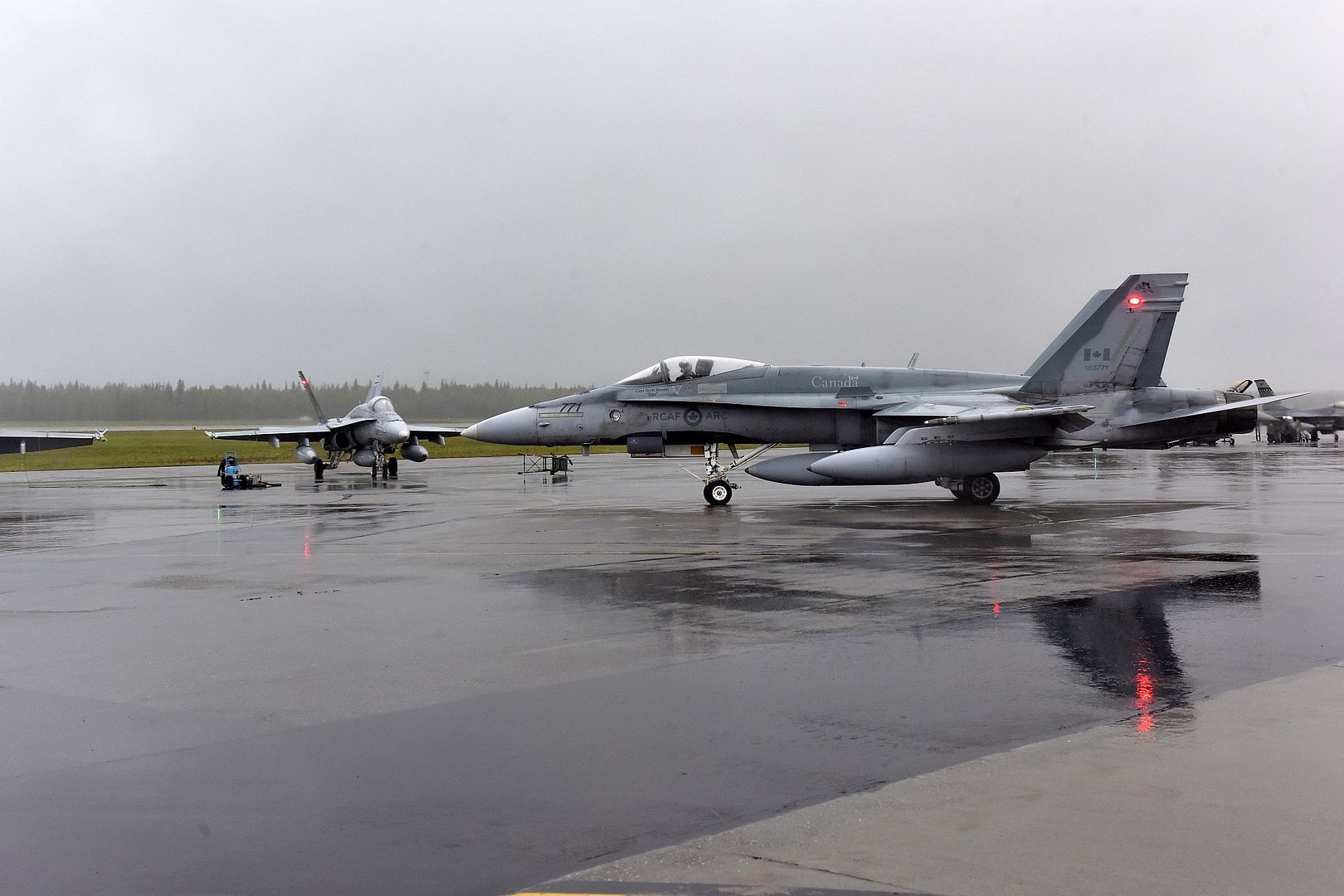 A Royal Canadian Air Force CF-18 Hornet taxis during RED FLAG-Alaska (RF-A) 19-3 at Eielson Air Force Base, Alaska, Aug. 13, 2019. RF-A 19-3 included participants from the Royal Australian Air Force, the Royal Canadian Air Force and the United Kingdom?s Royal Air Force. (U.S. Air Force photo by Senior Airman Eric M. Fisher)
