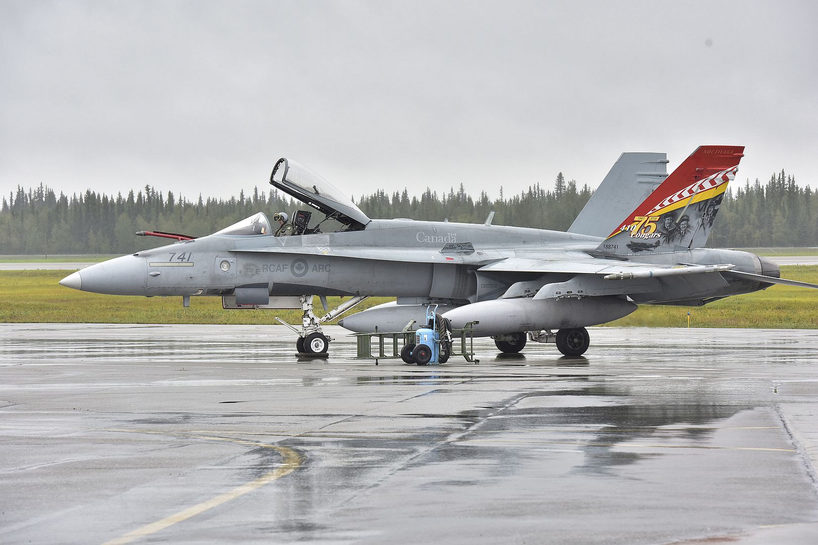 A Royal Canadian Air Force CF-18 Hornet is prepared for flight during RED FLAG-Alaska (RF-A) 19-3 at Eielson Air Force Base, Alaska, Aug. 13, 2019. RF-A is a Pacific Air Forces-sponsored exercise designed to provide realistic training in a simulated combat environment and takes place over the Joint Pacific Alaska Range Complex. (U.S. Air Force photo by Senior Airman Eric M. Fisher)
