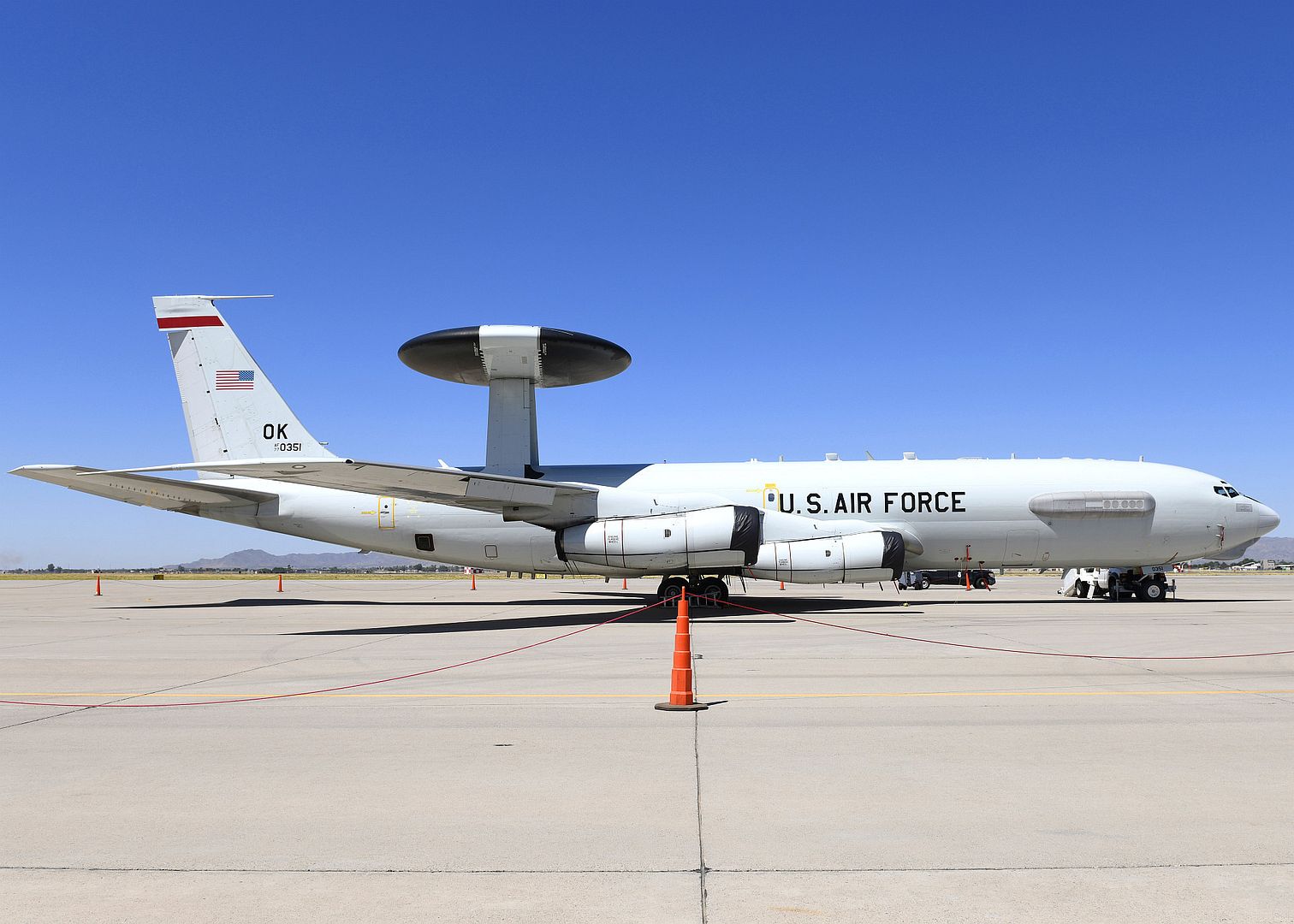 An E-3 Sentry Airborne Warning and Control System aircraft assigned to Tinker Air Force Base, Okla., sits on the transient ramp Aug. 19, 2019, at Luke AFB, Ariz. The AWACS is staging operations at Luke as they test new hot-weather equipment. The airborne platform is used to deliver weather surveillance, navigation, command, control and communications for commanders of U.S. and allied military forces. The radar and computer subsystems can gather positions and tracking information on both friendly and enemy aircraft, ships or ground forces. (U.S. Air Force photo's by Airman Brooke Moeder)