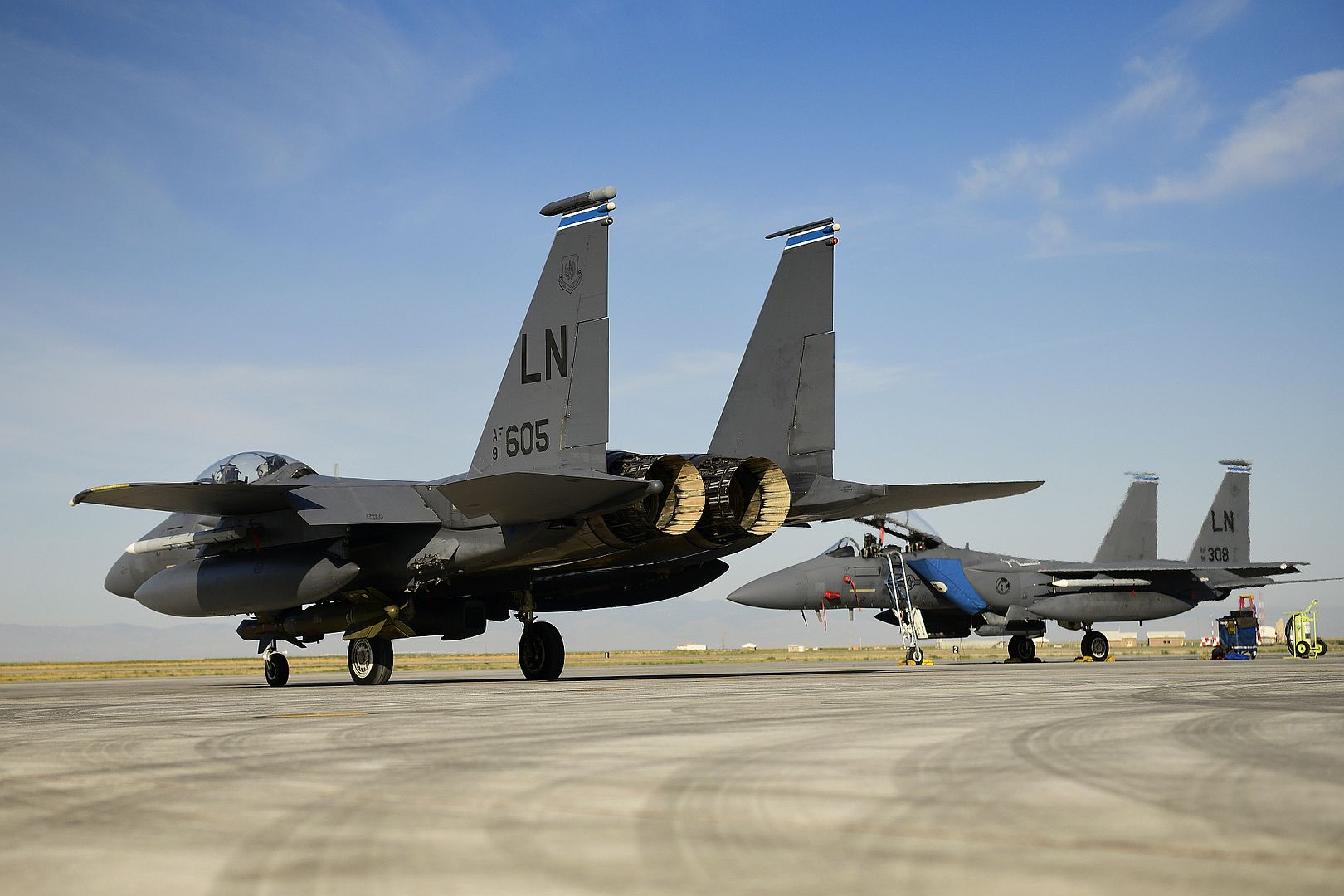 F-15E Strike Eagle's aassigned to the 492nd Fighter Squadron participate in exercise Combat Hammer at Mountain Home Air Force Base, Idaho August 14, 2019. The exercise is part of the U.S. Air Force Weapon Systems Evaluation Program, which is designed to evaluate the reliability, maintainability, suitability, and accuracy of precision guided munitions, as well as high technology air-to-ground munitions from tactical deliveries against realistic targets with realistic enemy defenses. (U.S. Air Force Photo's/ Tech. Sgt. Matthew Plew)