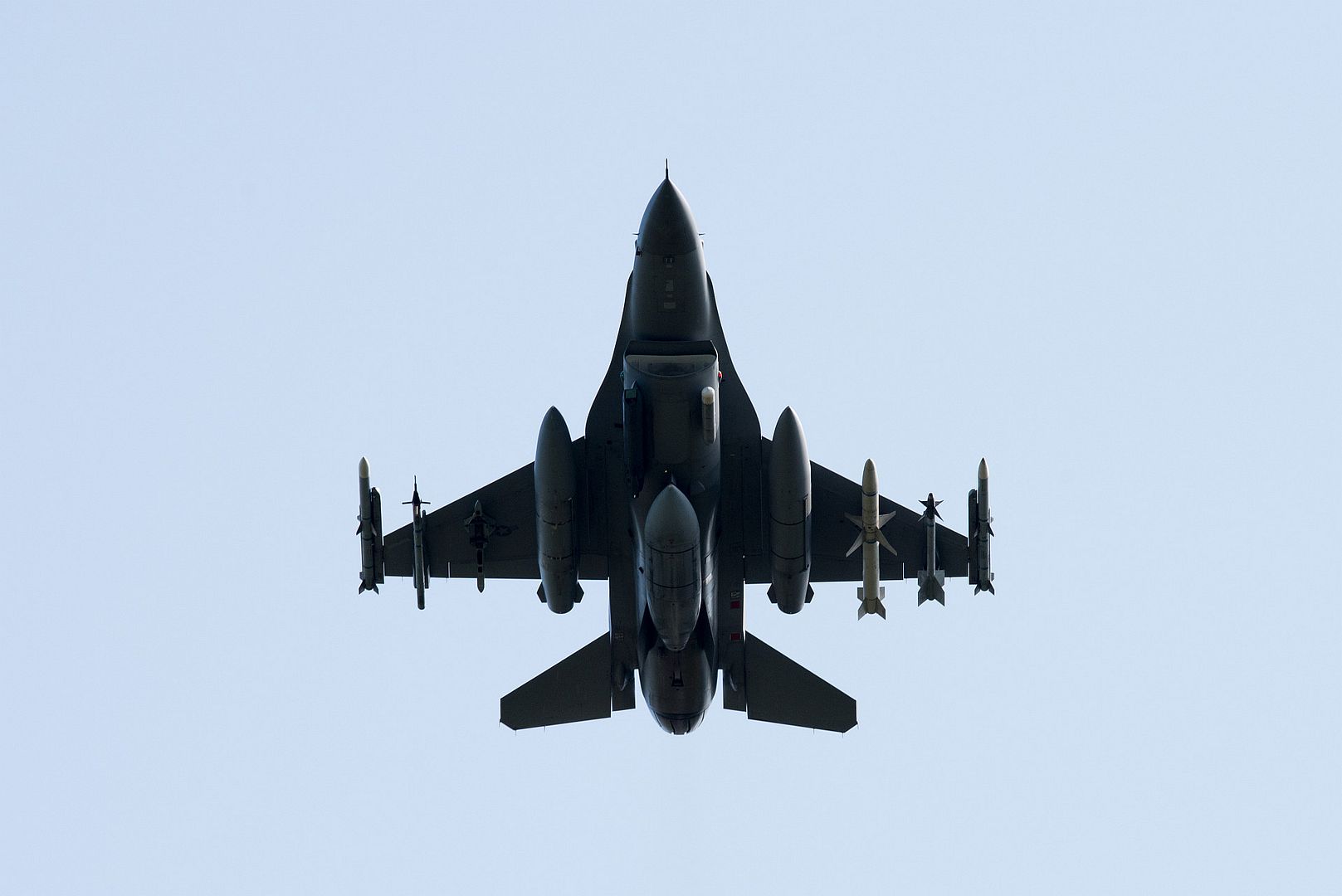 A U.S. Air Force F-16 Fighting Falcon departs after receiving fuel from a KC-135 Stratotanker assigned to the 340th Expeditionary Air Refueling Squadron out of Kandahar Airfield, Afghanistan, Aug. 19, 2019. The F-16 fills a critical role of enabling local security, and close air support to coalition forces on the ground. (U.S. Air Force photo by Staff Sgt. Keifer Bowes)