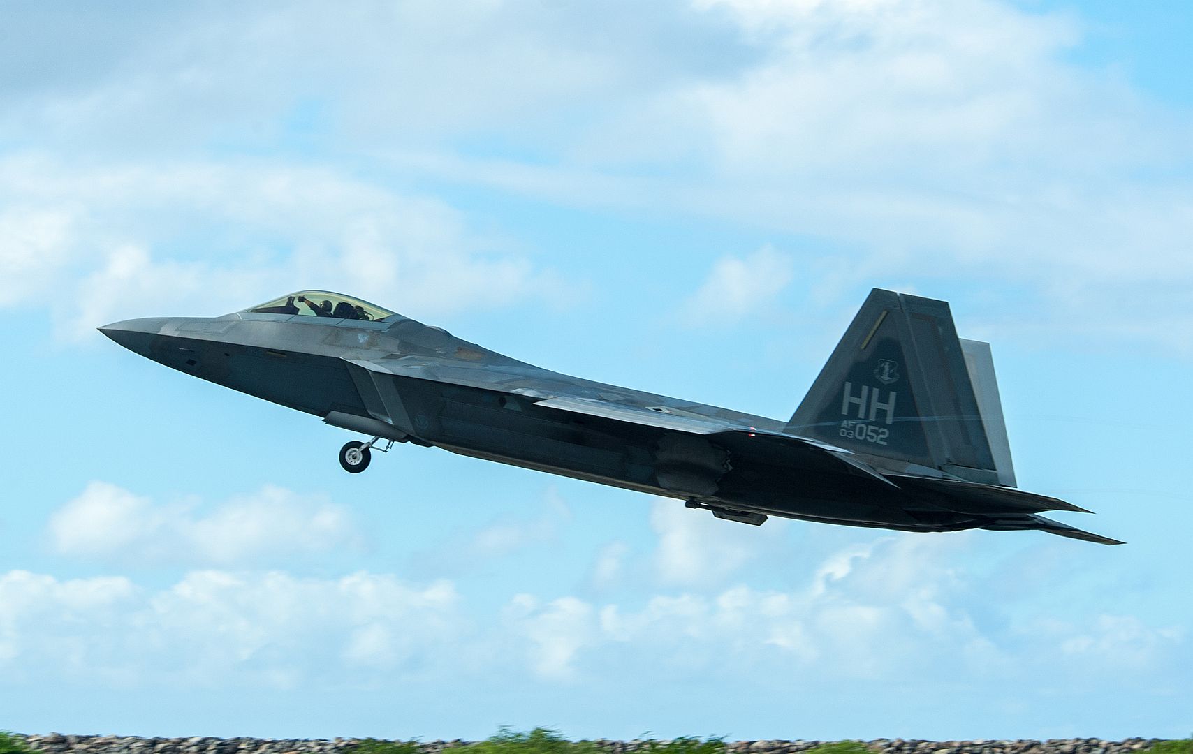 A Hawaii Air National Guard F-22 Raptor takes off at Joint Base Pearl Harbor-Hickam, Hawaii, Aug. 21, 2019 during fighter exercise Sentry Aloha 19-2. The longstanding exercise is held on a routine basis to provide Airmen with current, realistic and cost-effective training. This iteration of Sentry Aloha includes Air National Guard members from 15 states and a unit from the Royal Australian Air Force. (U.S. Air National Guard photo by Master Sgt. Mysti Bicoy)