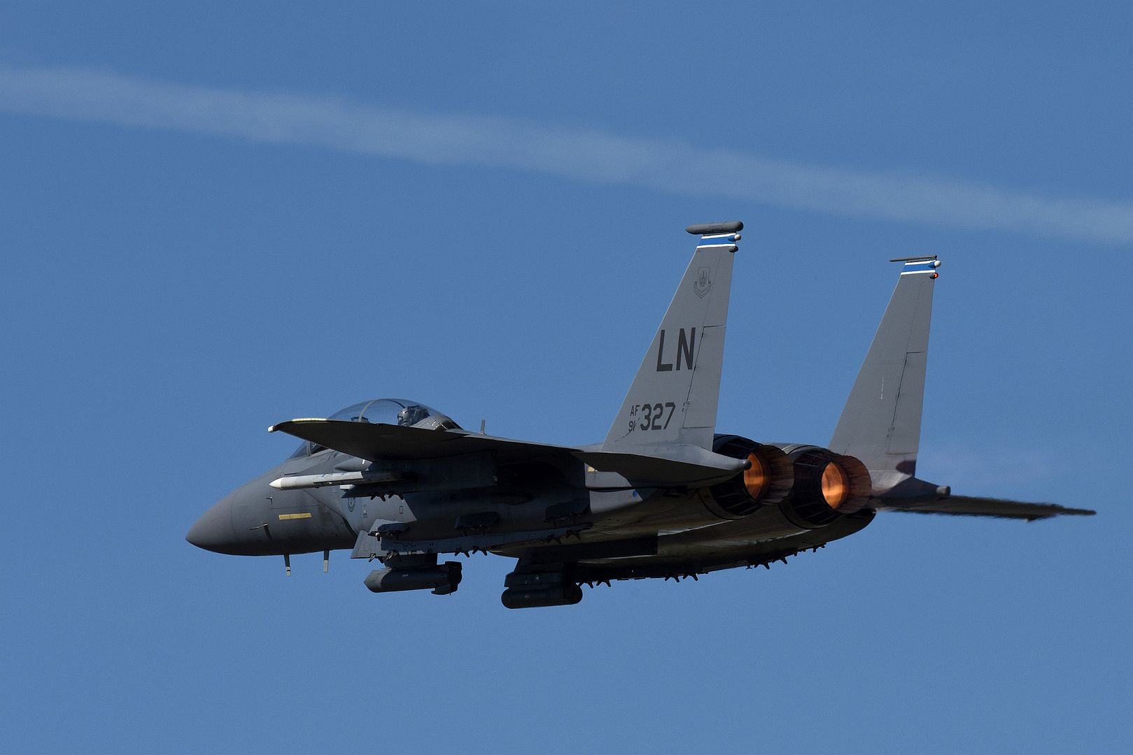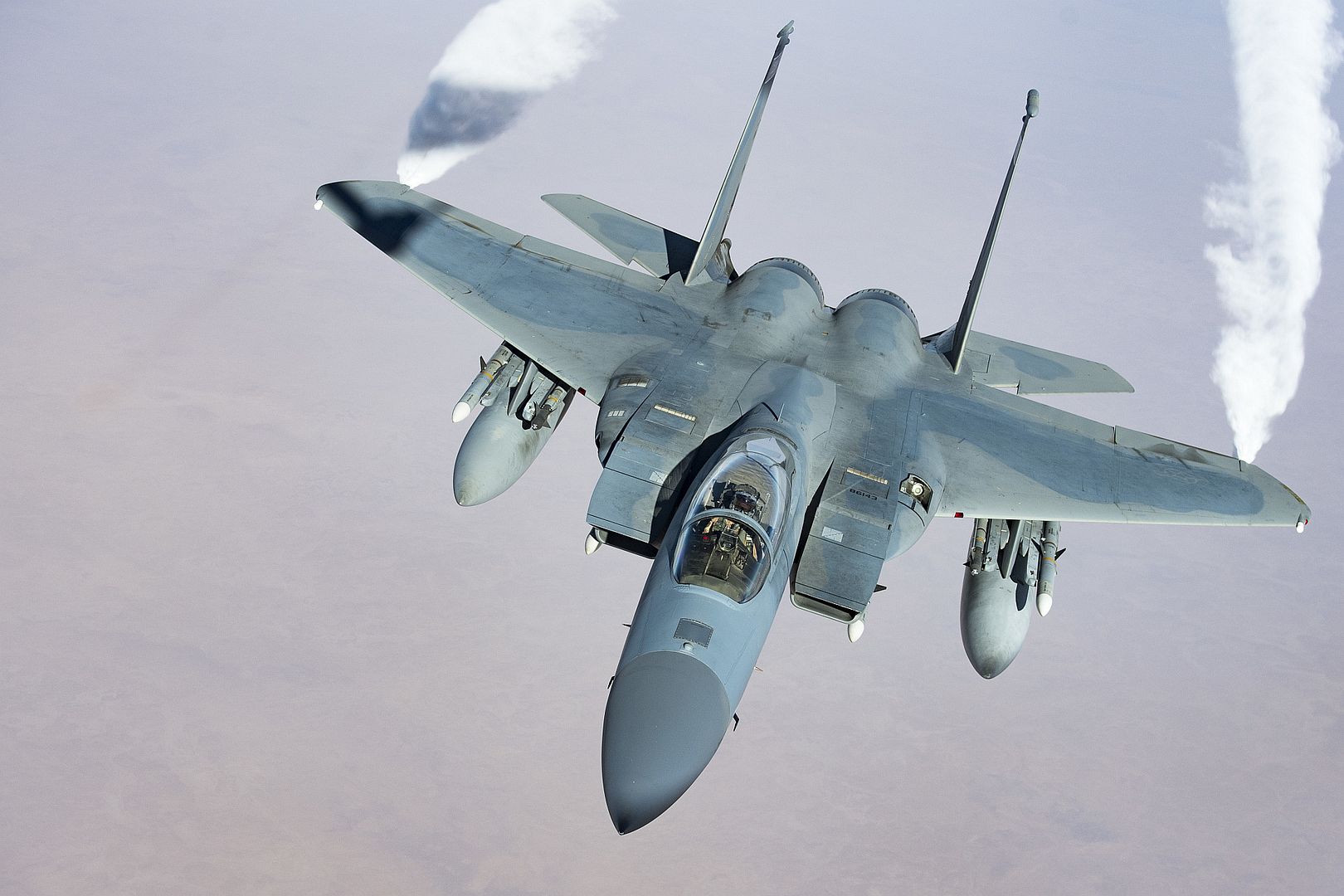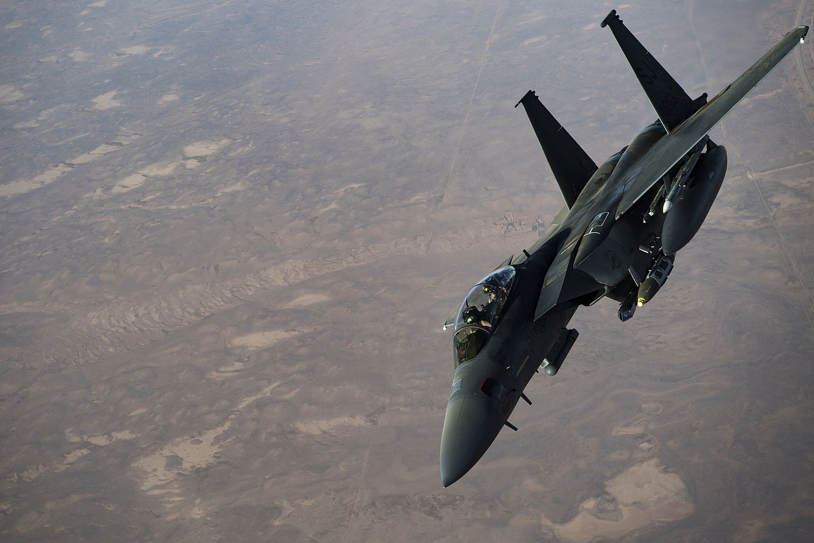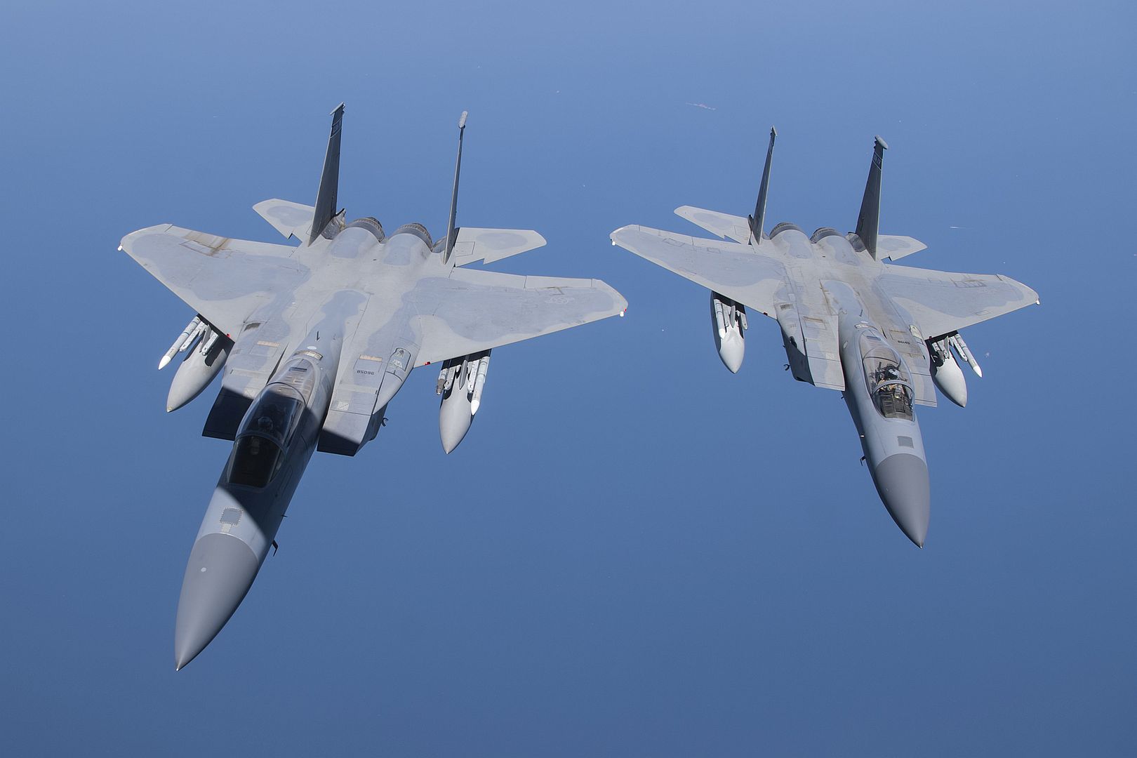 Main AdminA pair of U.S. Air Force F-15C Eagles conduct a combat air patrol mission over an undisclosed location in Southwest Asia, Sept. 6, 2019. The Eagle?s air superiority is achieved through a mixture of unprecedented maneuverability and acceleration, range, weapons and avionics. It can penetrate enemy defense and outperform and outfight any current enemy aircraft. (U.S. Air Force photo by Master Sgt. Russ Scalf)