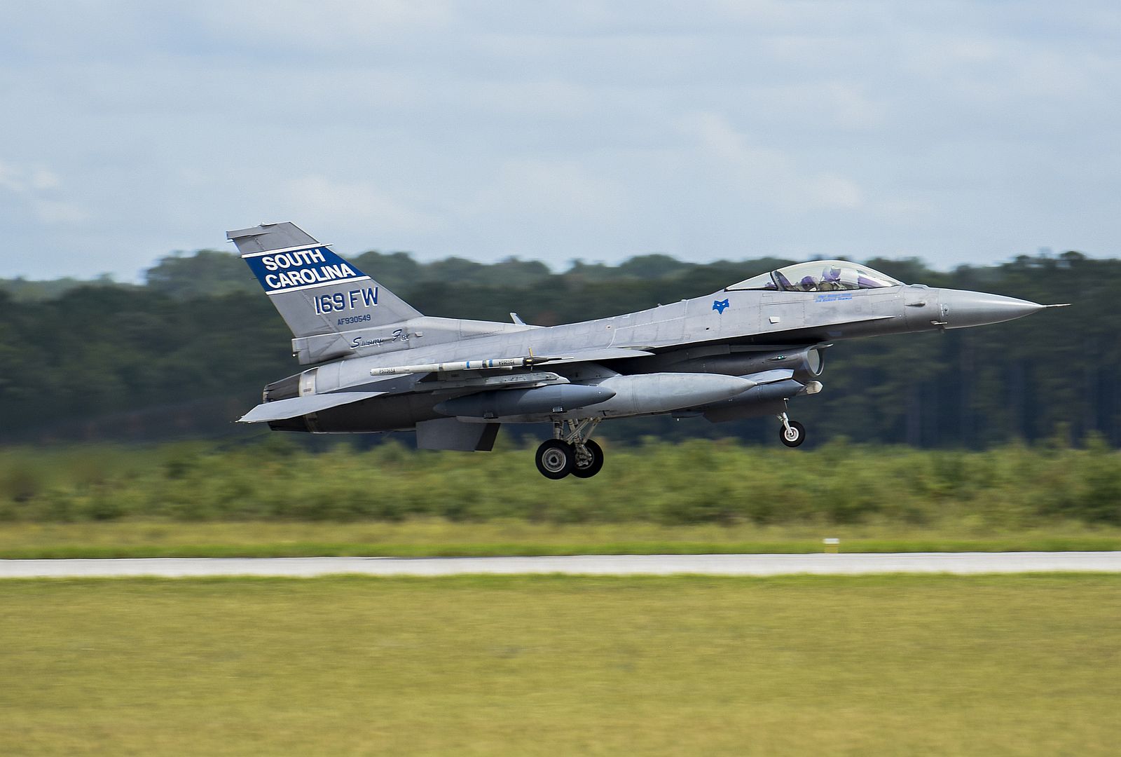 U.S. Air Force fighter pilots with the 157th Fighter Squadron at McEntire Joint National Guard Base, launch F-16 Fighting Falcon jets in preparation for potential damage caused by Hurricane Dorian, September 4, 2019. The South Carolina Air National Guard is evacuating most of its F-16 fighter jet fleet to Naval Air Station Fort Worth, Texas. (U.S. Air National Guard photo by Master Sgt. Caycee Watson, 169th Fighter Wing Public Affairs)