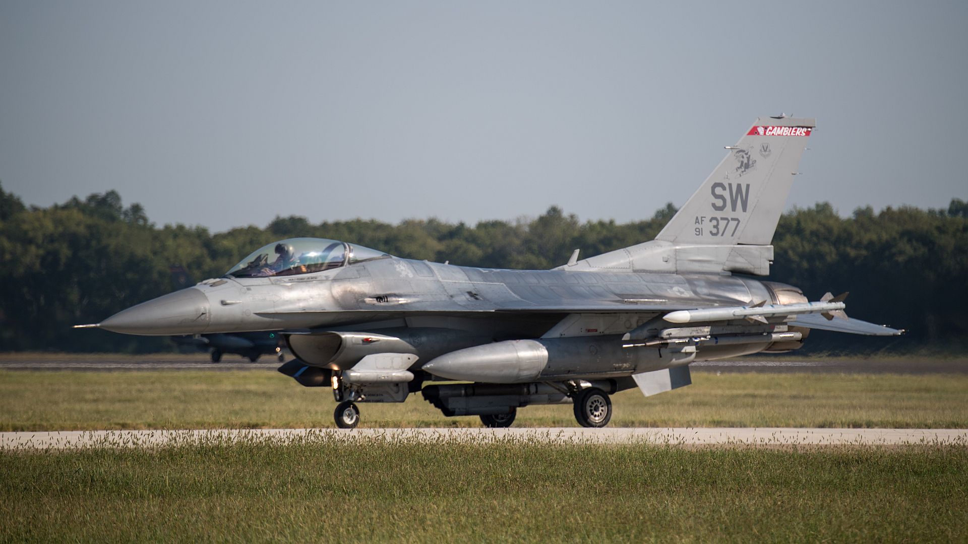 F-16 Viper's from Shaw Air Force Base, South Carolina, arrive at Barksdale Air Force Base, Louisiana, before Hurricane Dorian?s arrival Sept. 4, 2019. (U.S. Air Force photo's by Airman 1st Class Lillian Miller)