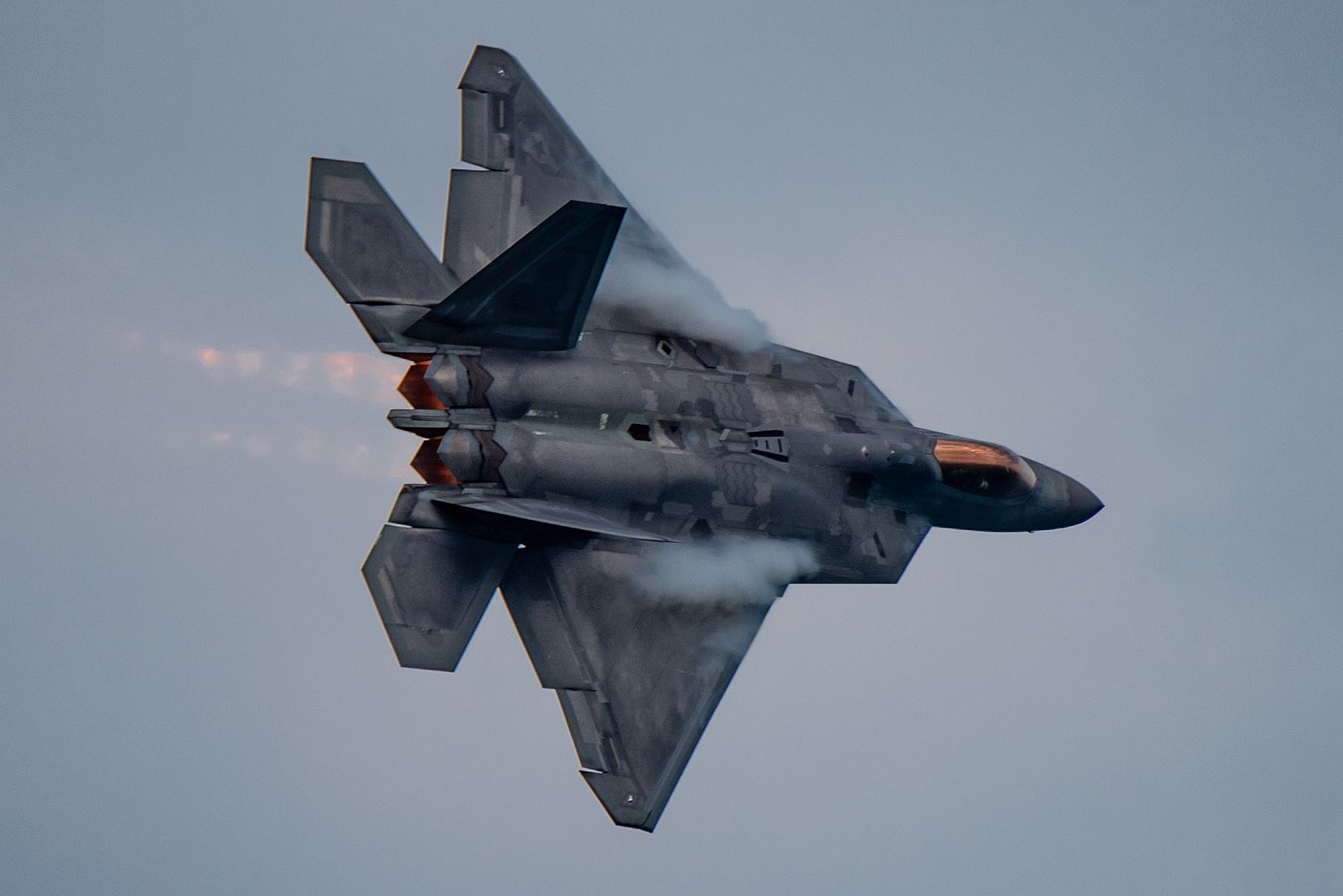 U.S. Air Force Maj. Paul Lopez, F-22 Demo Team commander, flies a a demonstration during the Chicago Air and Water Show Aug. 17, 2019. Founded in 2007, the F-22 Raptor Demo Team showcases the unique capabilities of the world's premier 5th-generation fighter aircraft. (U.S. Air Force photo's by 2nd Lt. Samuel Eckholm)