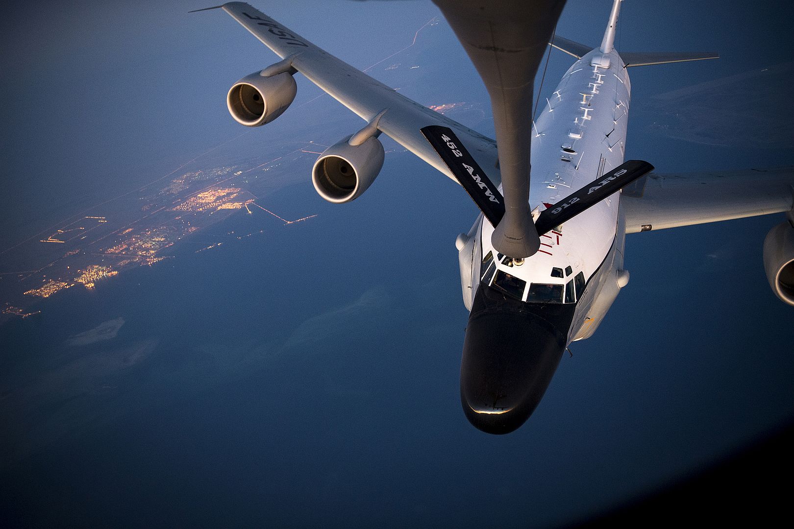 The air refueling between the two branches shows the versatility of the KC-135.