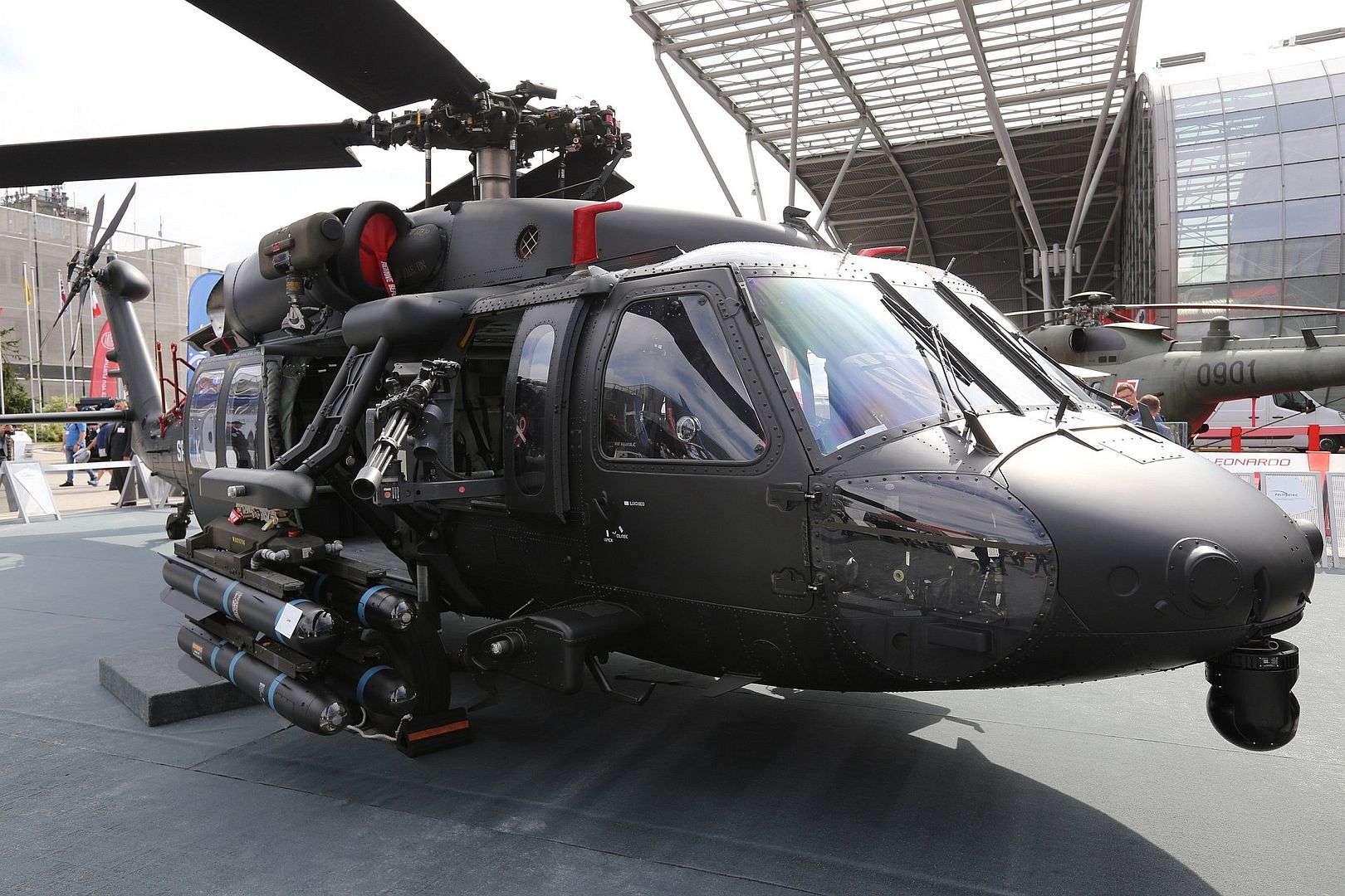 As a complementary option for the S-70i / S-70M Armed Black Hawk with dual-station wings, the single station pylon will integrate with the aircraft's weapons management system that calculates the range and complex ballistics required for pilot gunners to engage targets with high accuracy and reliability from stand-off distances during day and night operations.