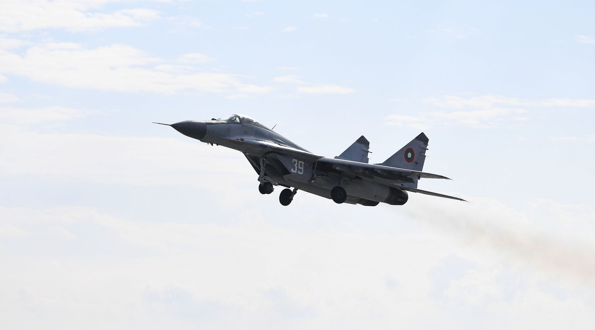 A Bulgarian Air Force MiG-29 takes off during exercise Rapid Buzzard Sept. 25, 2019, at Graf Ignatievo Air Base, Bulgaria. The 510th Fighter Squadron conducted air-to-air training with Bulgarian MiG-29s and air-to-surface training with Bulgarian Air Defense assets. (U.S. Air Force photo by Senior Airman Savannah L. Waters)
