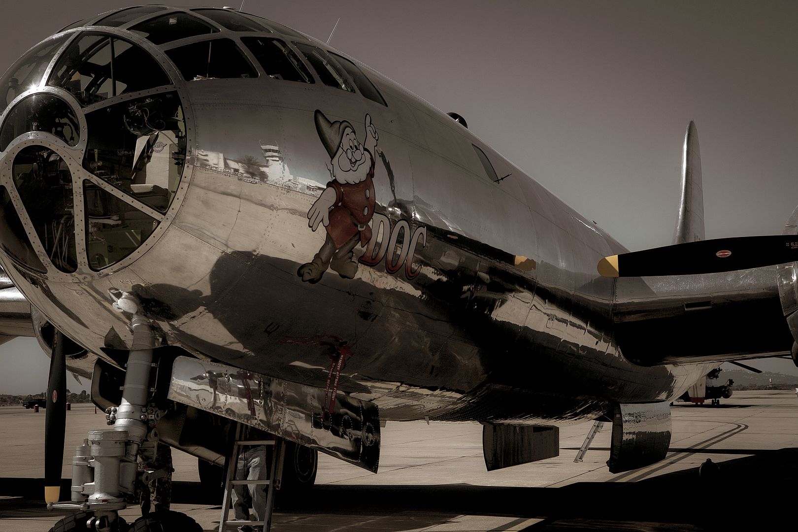 Col. Charles Dockery, commanding officer of Marine Corps Air Station Miramar, and family join the B-29 Superfortress ?Doc? crew for an exclusive tour at MCAS Miramar Calif, Oct. 2. The ?Doc? is one of the two B-29?s that are still capable of flying today and it departed MCAS Miramar on Oct. 3 after being used as a static display during the 2019 MCAS Miramar Air Show. (U.S. Marine Corps photo's by Cpl. Raynaldo Ramos)