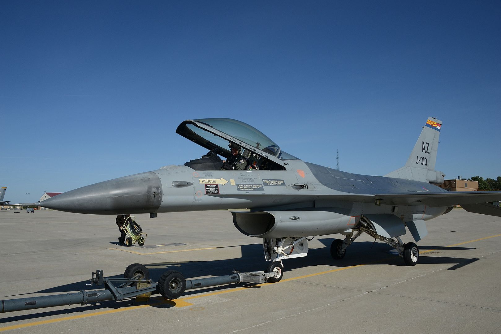 Lt. Colonel Niki Luijsterburg of the Royal Netherlands Air Force brings his F-16 to the185th Air Refueling Wing in Sioux City, Iowa on October 8, 2019. Over the course of the next few weeks the aircraft will receive a new coat of paint at the Air National Guard paint facility in Sioux City as part of ongoing corrosion control protocols. The Dutch F-16 is attached to the 162nd Fighter Wing of the Arizona Air National Guard as part of the fighter training program in Tucson.